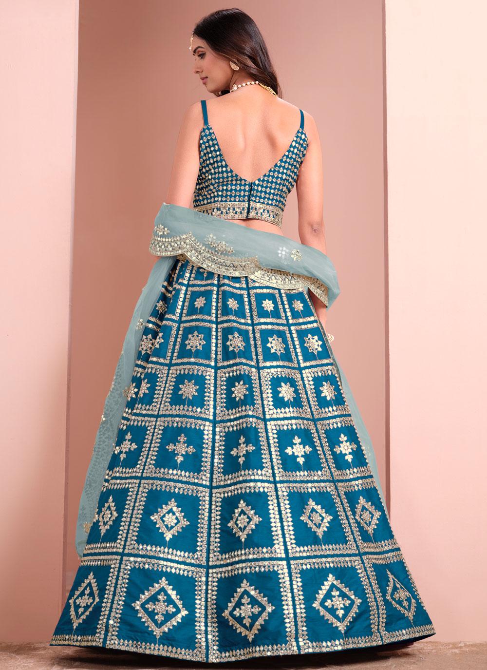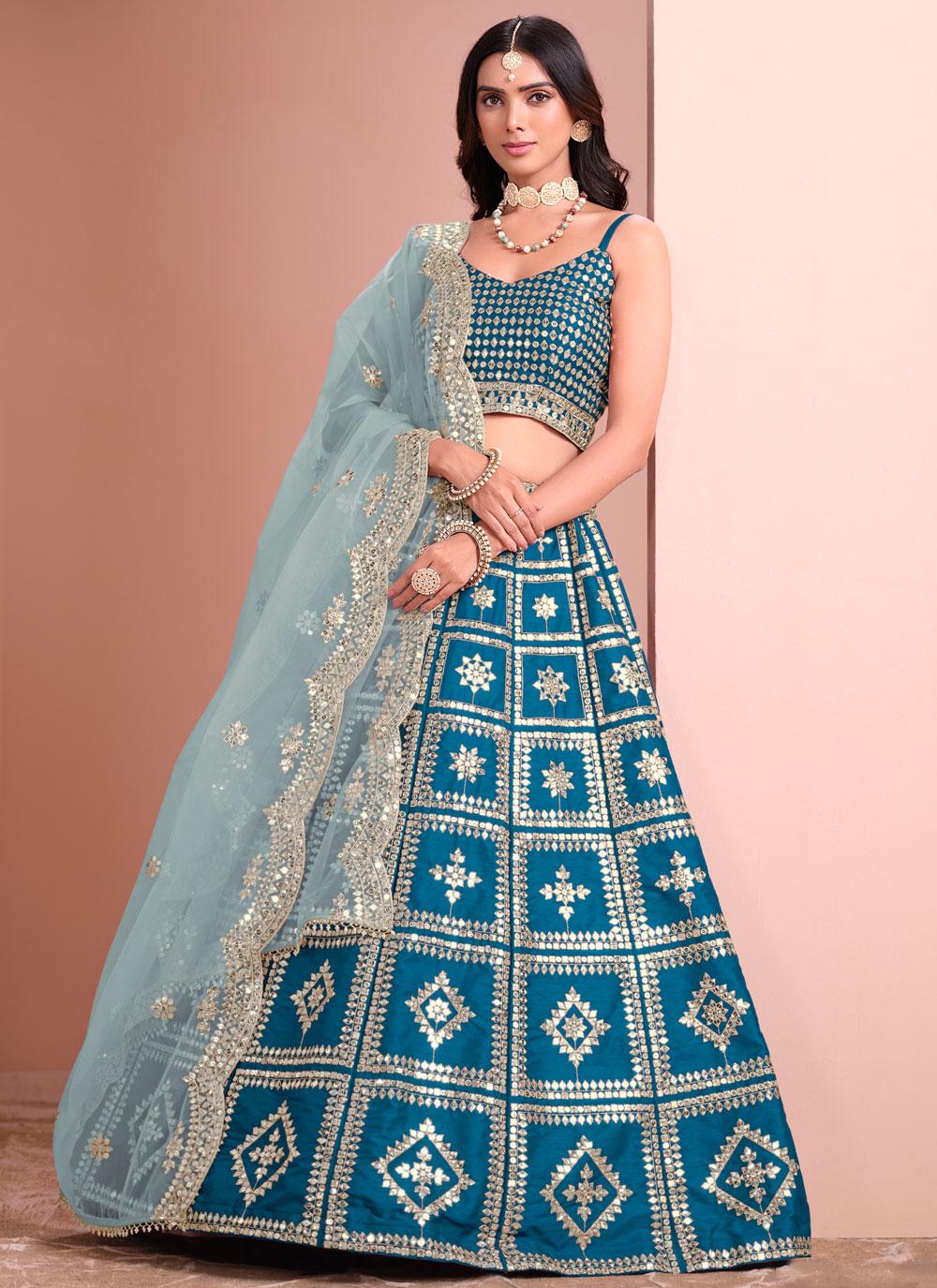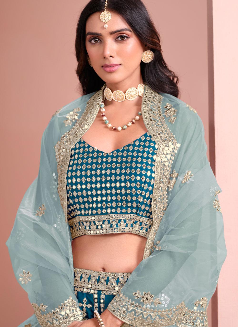This Blue Art Silk Embroidered A-Line Lehenga Choli is perfect for festivals. Featuring intricate embroidery and a flattering A-line silhouette, it offers elegance and style. The matching dupatta completes the look, making it an ideal choice for your festive celebrations.