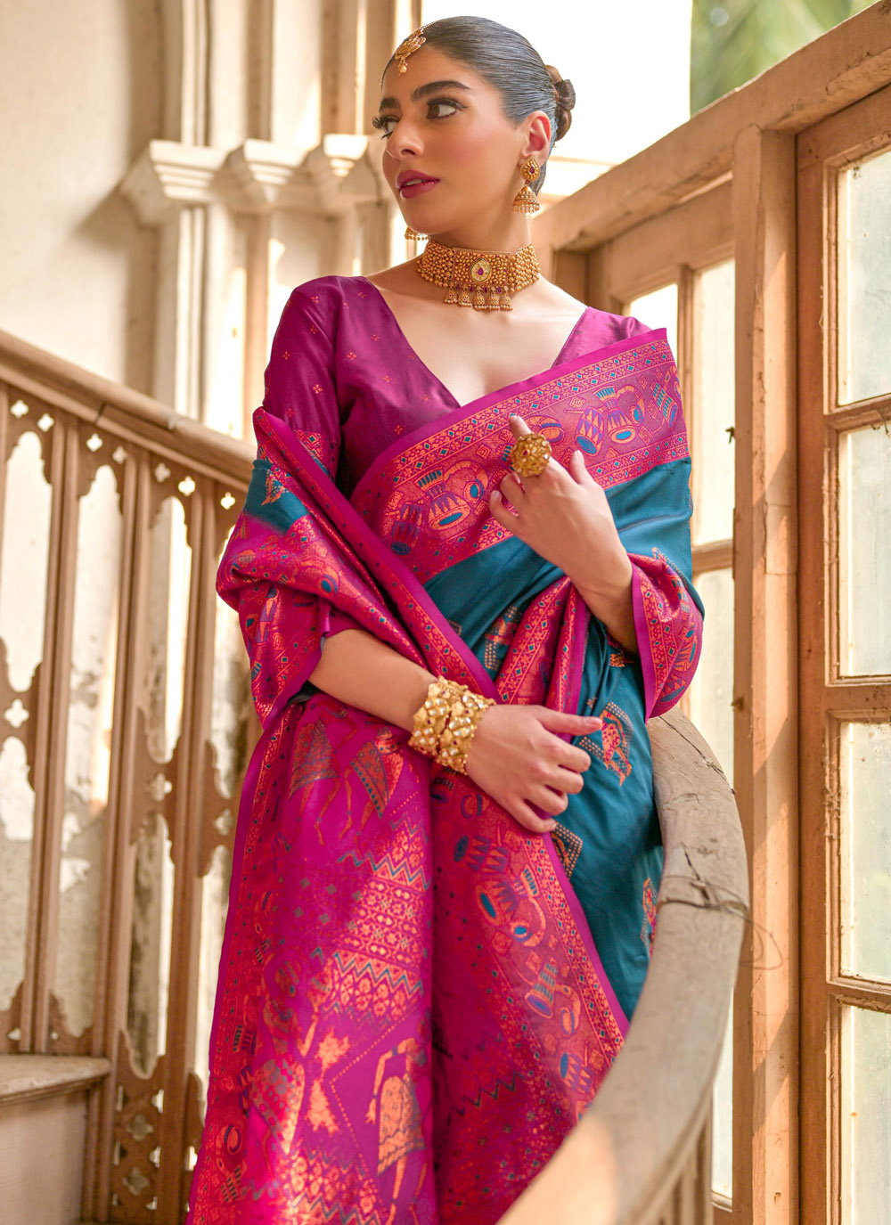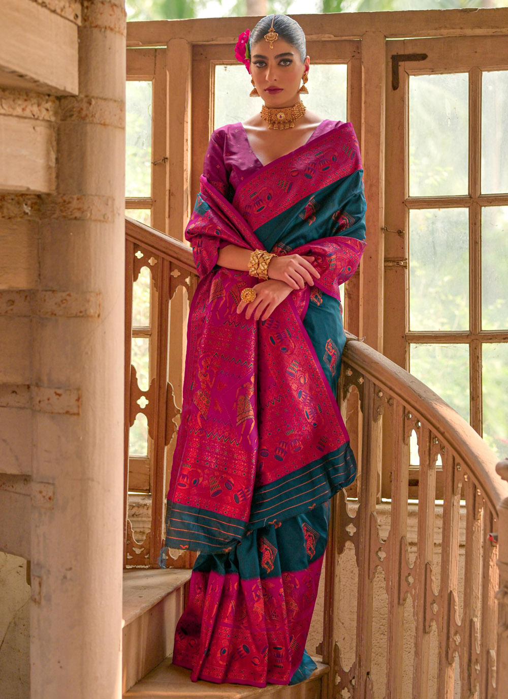 This Traditional Blue Banarasi Silk Saree beautifully showcases zari woven artistry, blending heritage elegance with festive grandeur. Its graceful drape and shimmering golden patterns make it a perfect ensemble for weddings and special occasions. Comes with matching blouse.