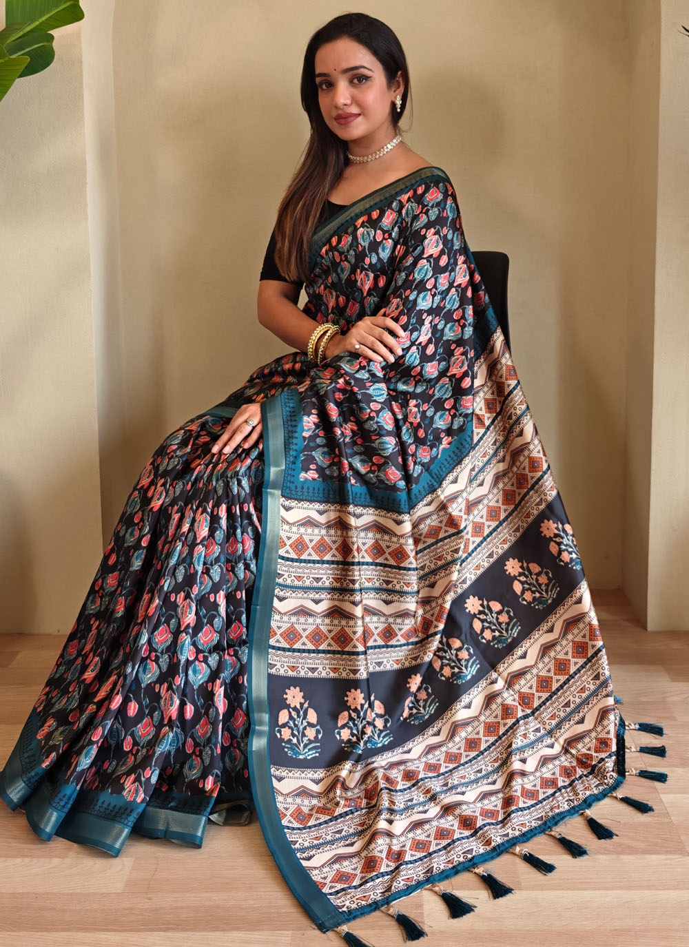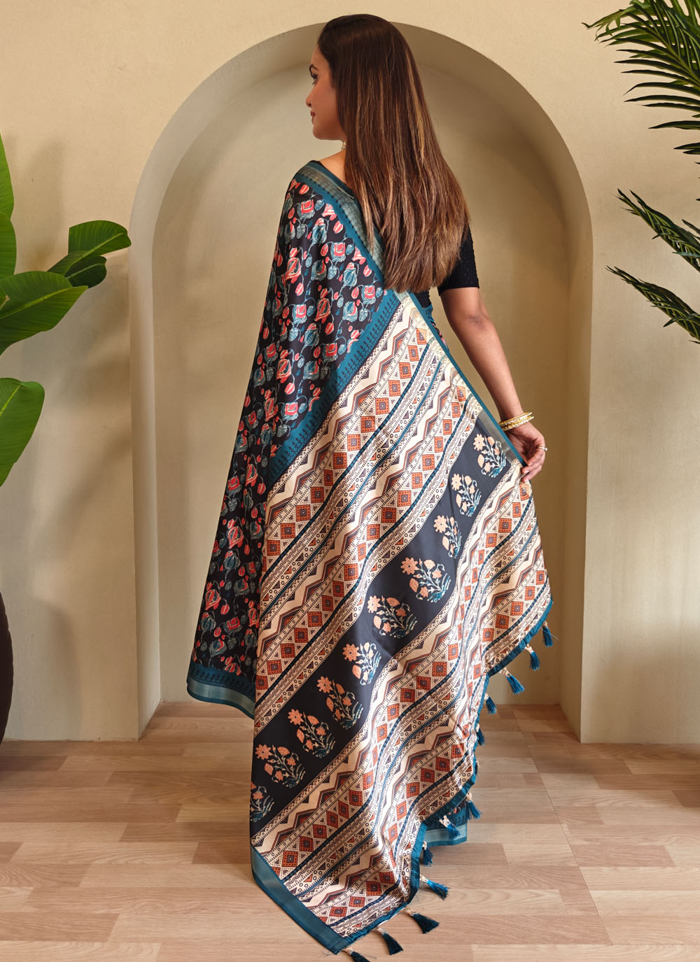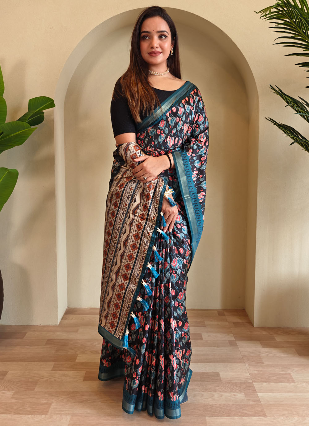Turn heads in this stunning Blue Dola Viscose Designer Saree, featuring exquisite digital print work that blends modern design with ethnic elegance. The soft, glossy fabric offers a flattering drape. Comes with matching blouse.