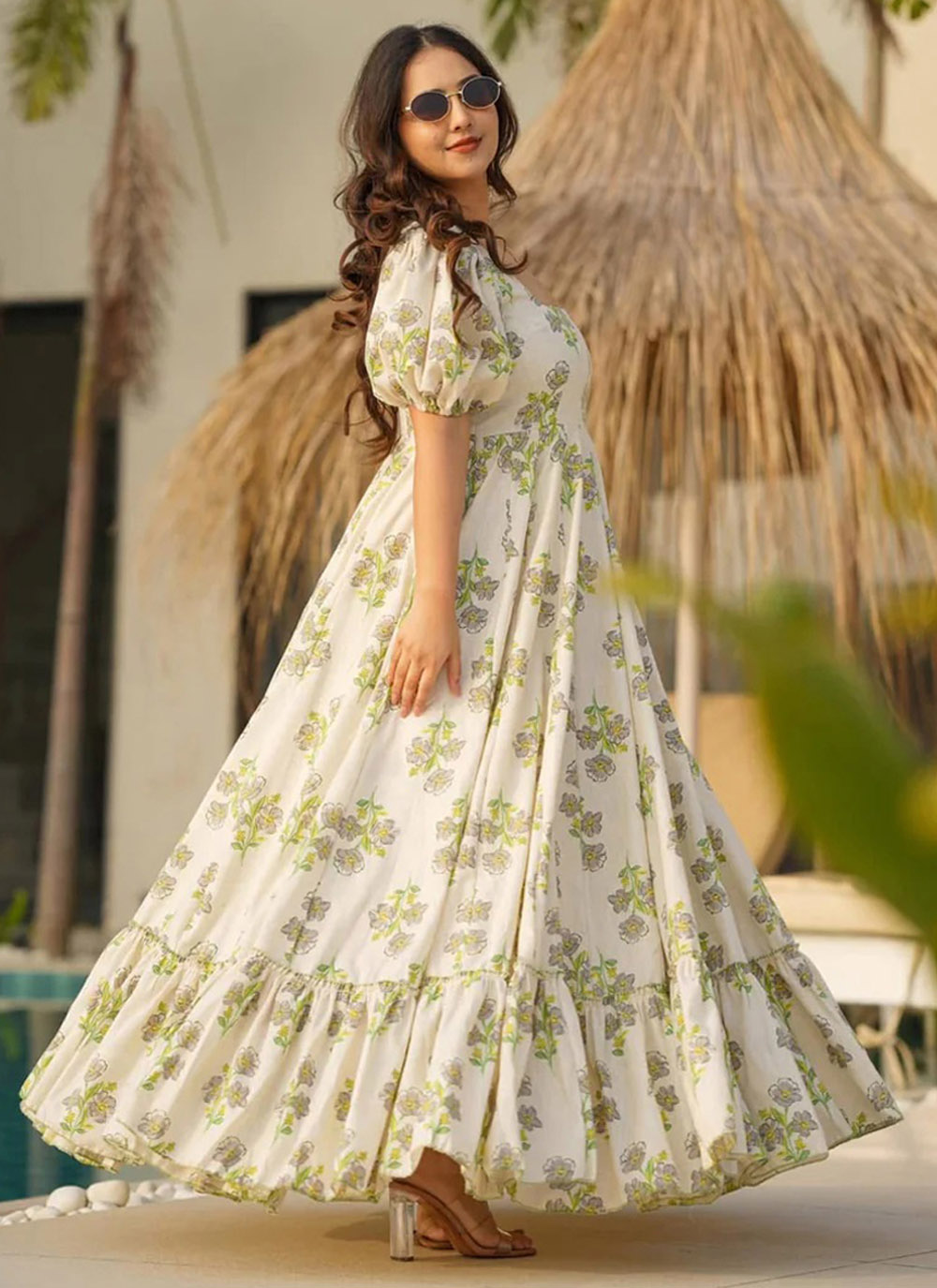 Make a graceful statement in this trendy Off-White Digital Printed Cotton Gown. With contemporary motifs and a flattering ready-to-wear fit, it offers an ideal fusion of elegance and ease.