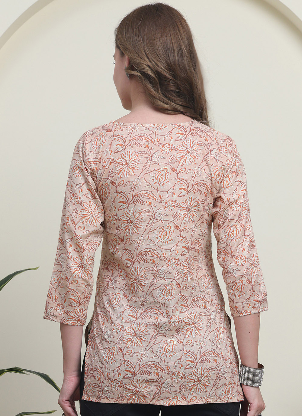 This peach cotton printed kurti is perfect for relaxed everyday wear. Made from soft and breathable cotton fabric, it features subtle prints that add charm while keeping the look light and comfortable.