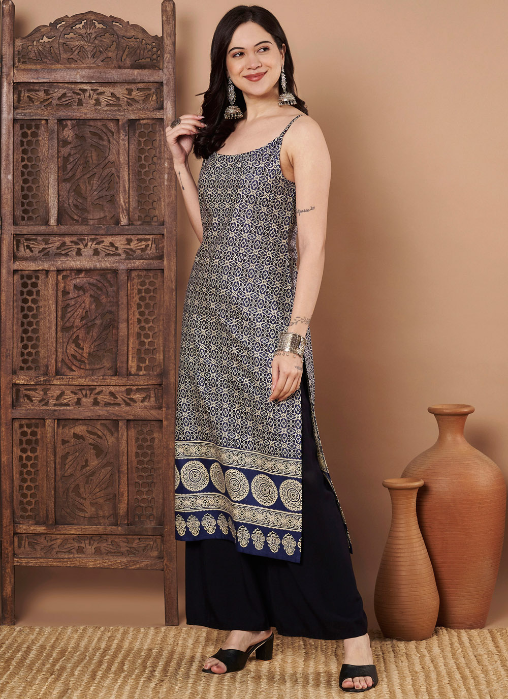 This Blue Cotton Printed Kurti is designed for women who love comfort with a trendy appeal. The lightweight cotton fabric feels gentle on the skin, while the attractive print enhances its casual elegance.