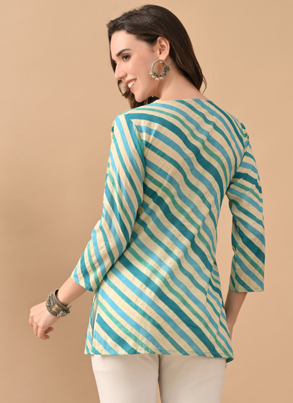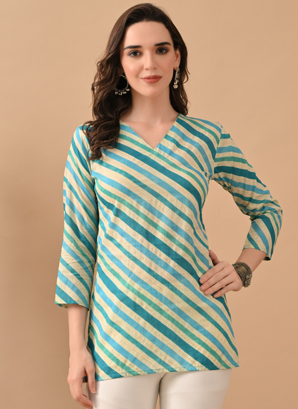 This trendy multi colour kurti is made from comfortable cotton fabric and detailed with stylish print work. Its relaxed fit and vibrant design make it a great choice for everyday wear and casual gatherings.