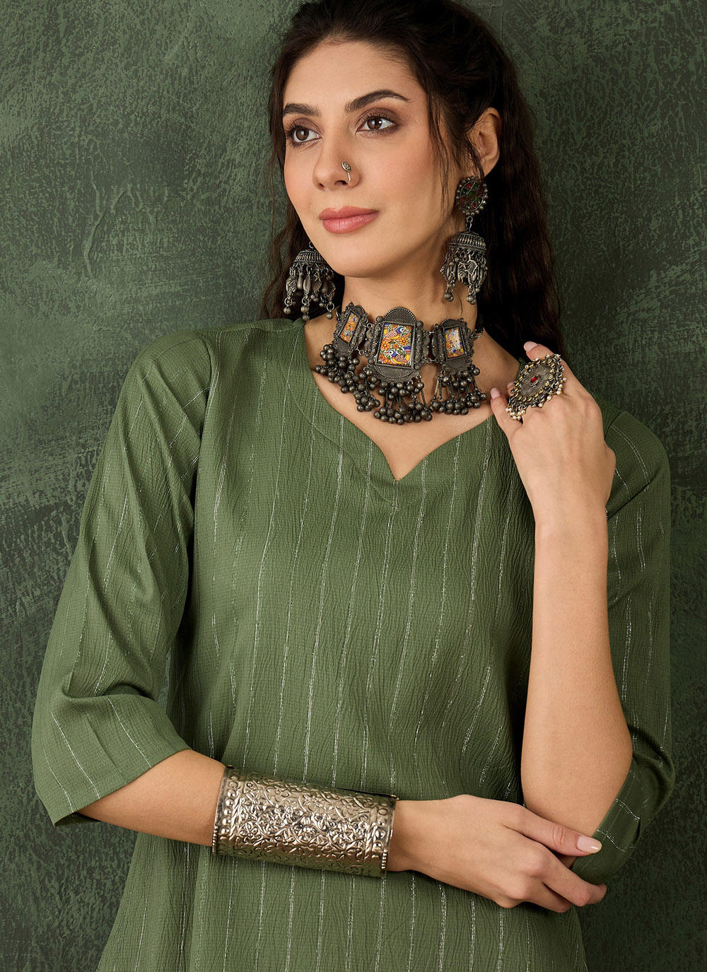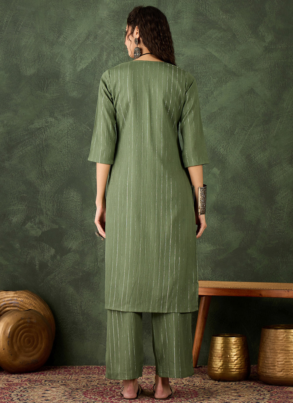 Experience the perfect balance of luxury and ease with this green cotton silk blend woven casual kurti. The breathable cotton combined with the richness of silk creates a lightweight yet elegant outfit.