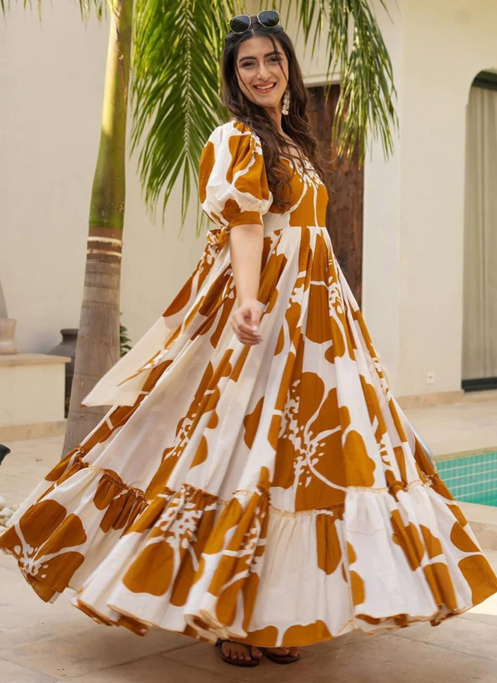 Crafted from pure cotton, this white gown features delicate digital prints that strike the perfect balance between tradition and modernity. Designed for effortless wear, it brings a breezy charm to any casual or semi-formal occasion.