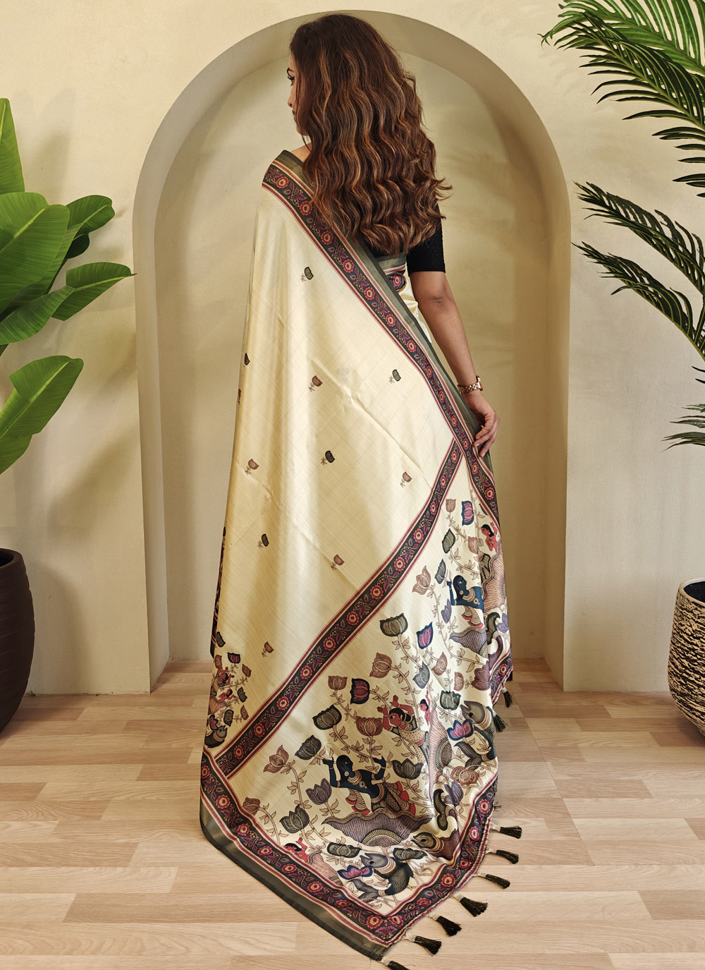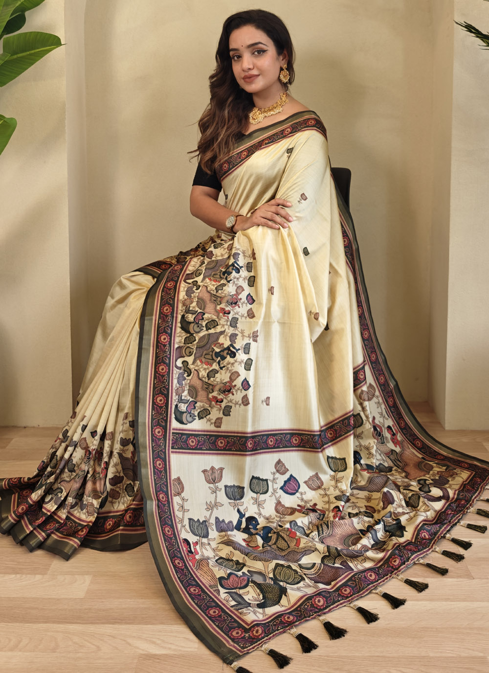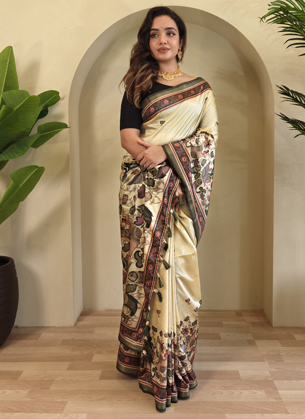 Designed for women who appreciate understated glam, this saree offers a classic drape that flows effortlessly. The digital patterns reflect refined artistry, making it ideal for festival and occasions.. Comes with matching blouse.