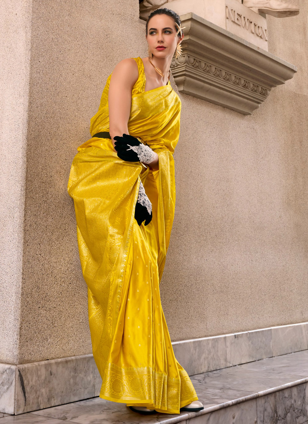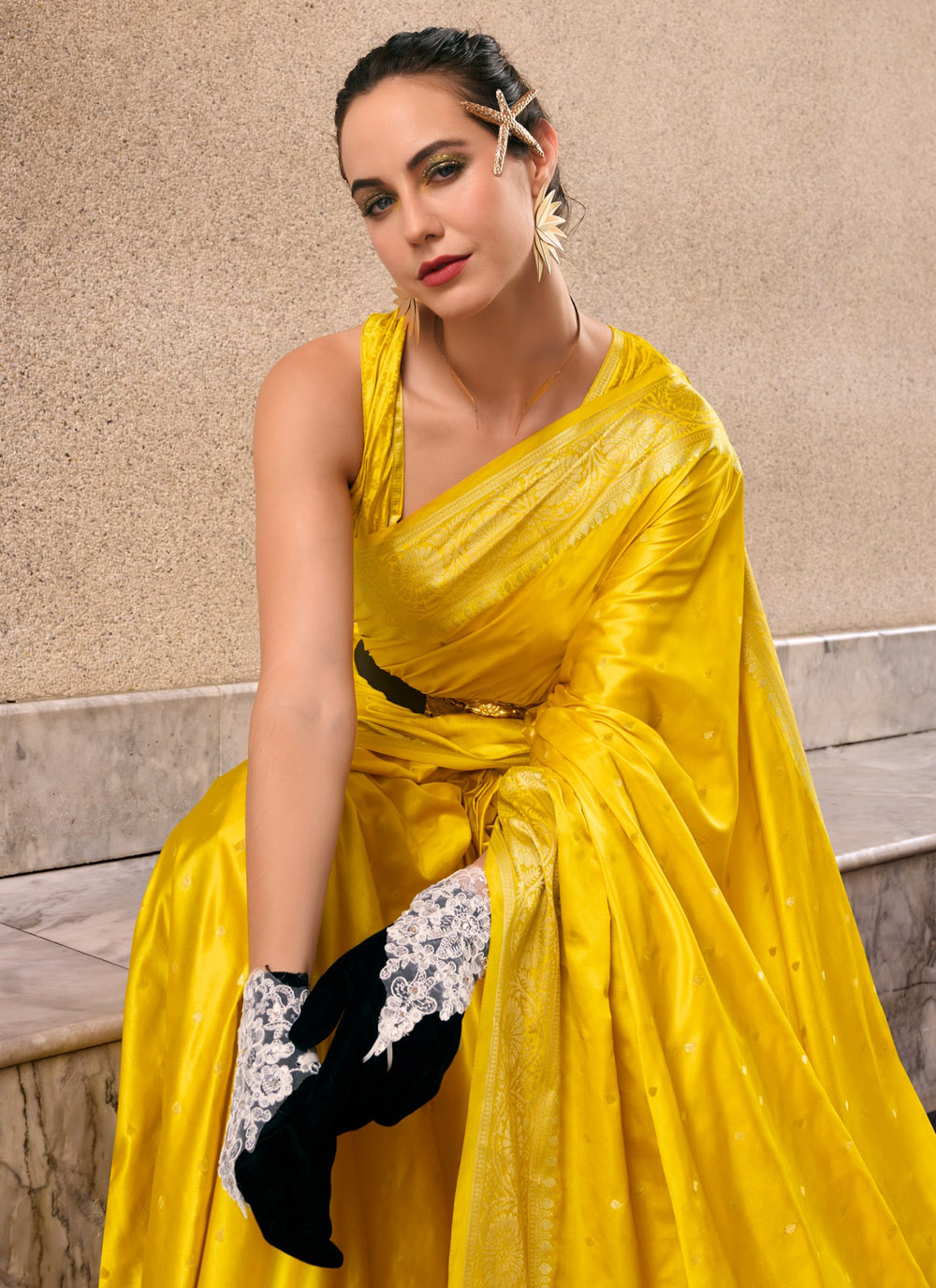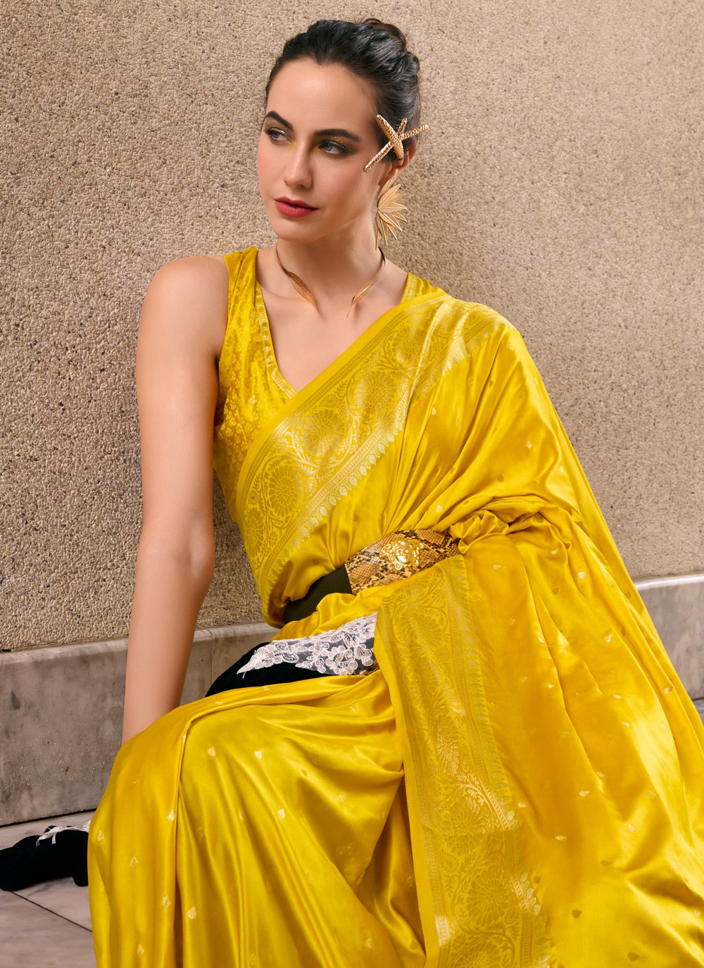 Turn heads in this designer satin silk saree, highlighted with elegant woven work and a trendy finish. Its smooth texture and contemporary appeal make it perfect for festive parties, receptions and stylish functions. Comes with matching blouse.