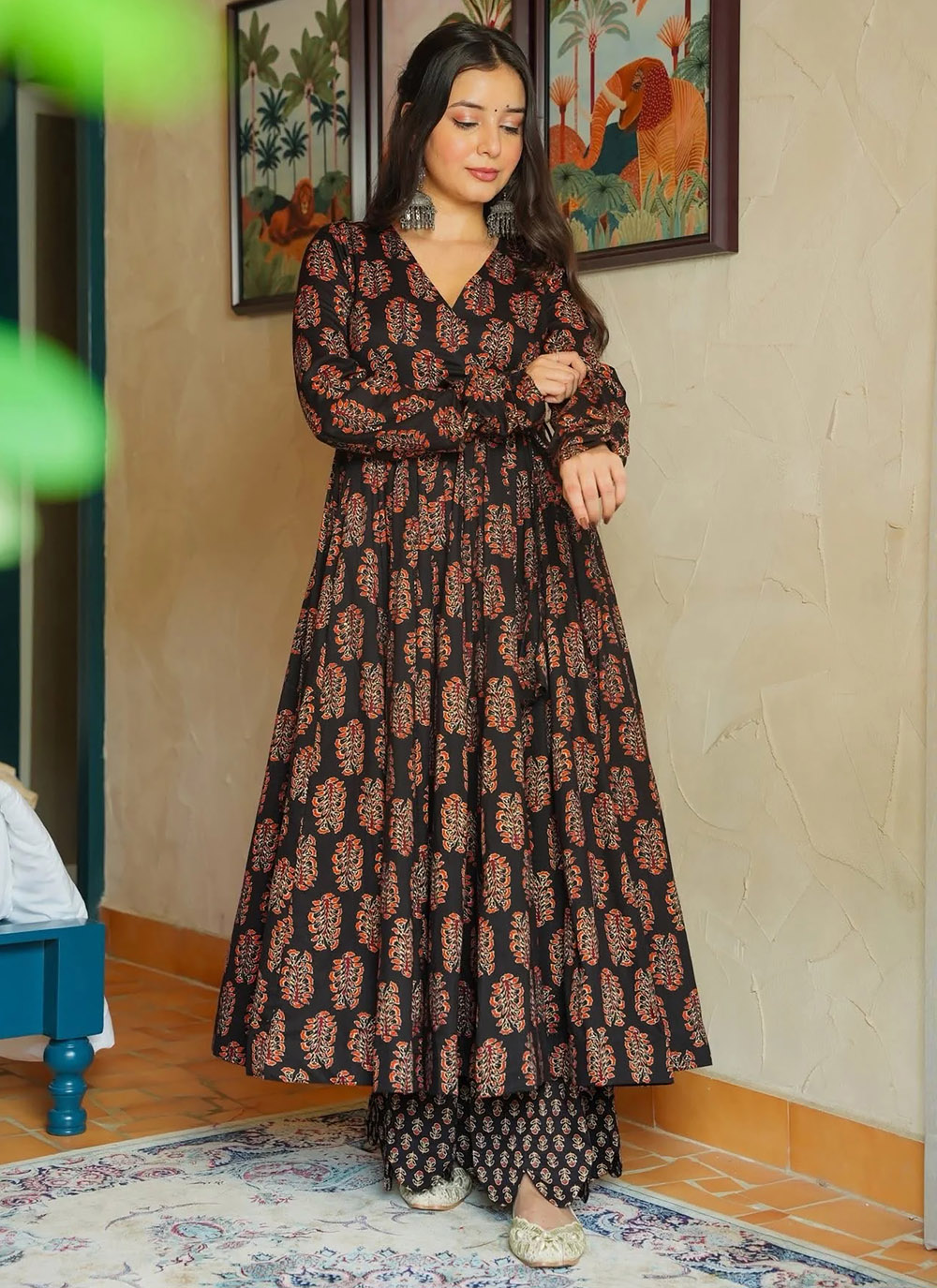 Upgrade your modern ethnic style with this digitally printed black kurti made from premium rayon. The elegant prints elevate its designer appeal, while the lightweight feel ensures all-day comfort. A great choice for women who love classy and stylish kurti designs. Comes with matching bottom.