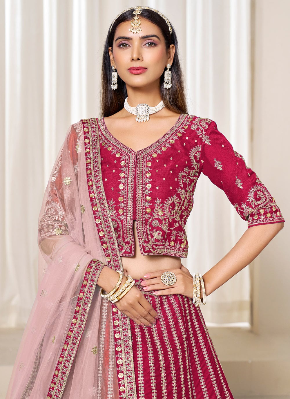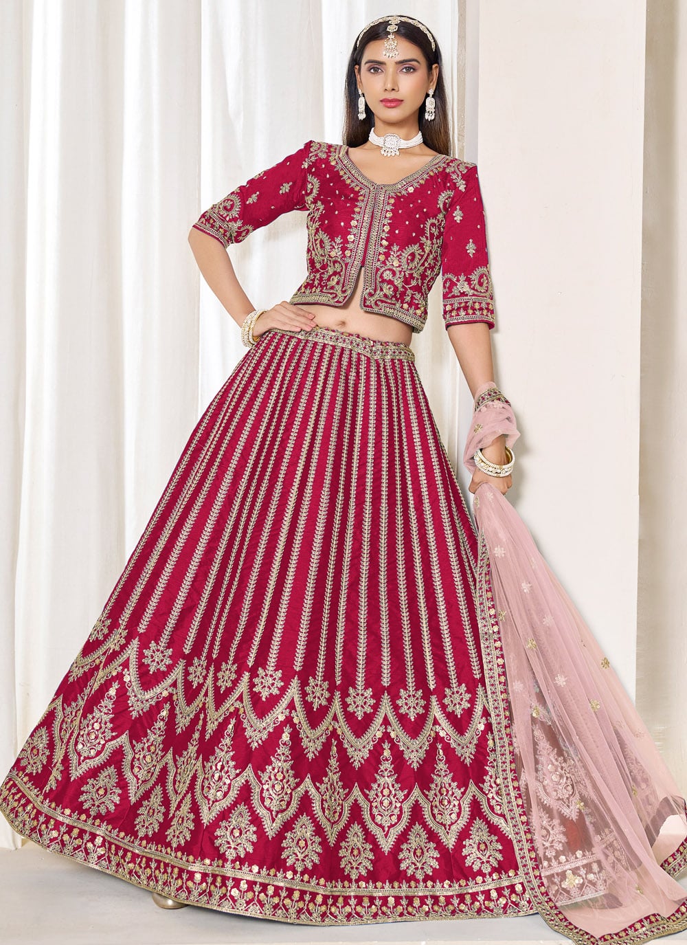 Celebrate your engagement in regal elegance with this Embroidered Art Silk Red Lehenga Choli. The vibrant red hue, symbolic of love and auspicious beginnings, is beautifully complemented by intricate embroidery work across the lehenga and choli. Comes with matching choli and dupatta.