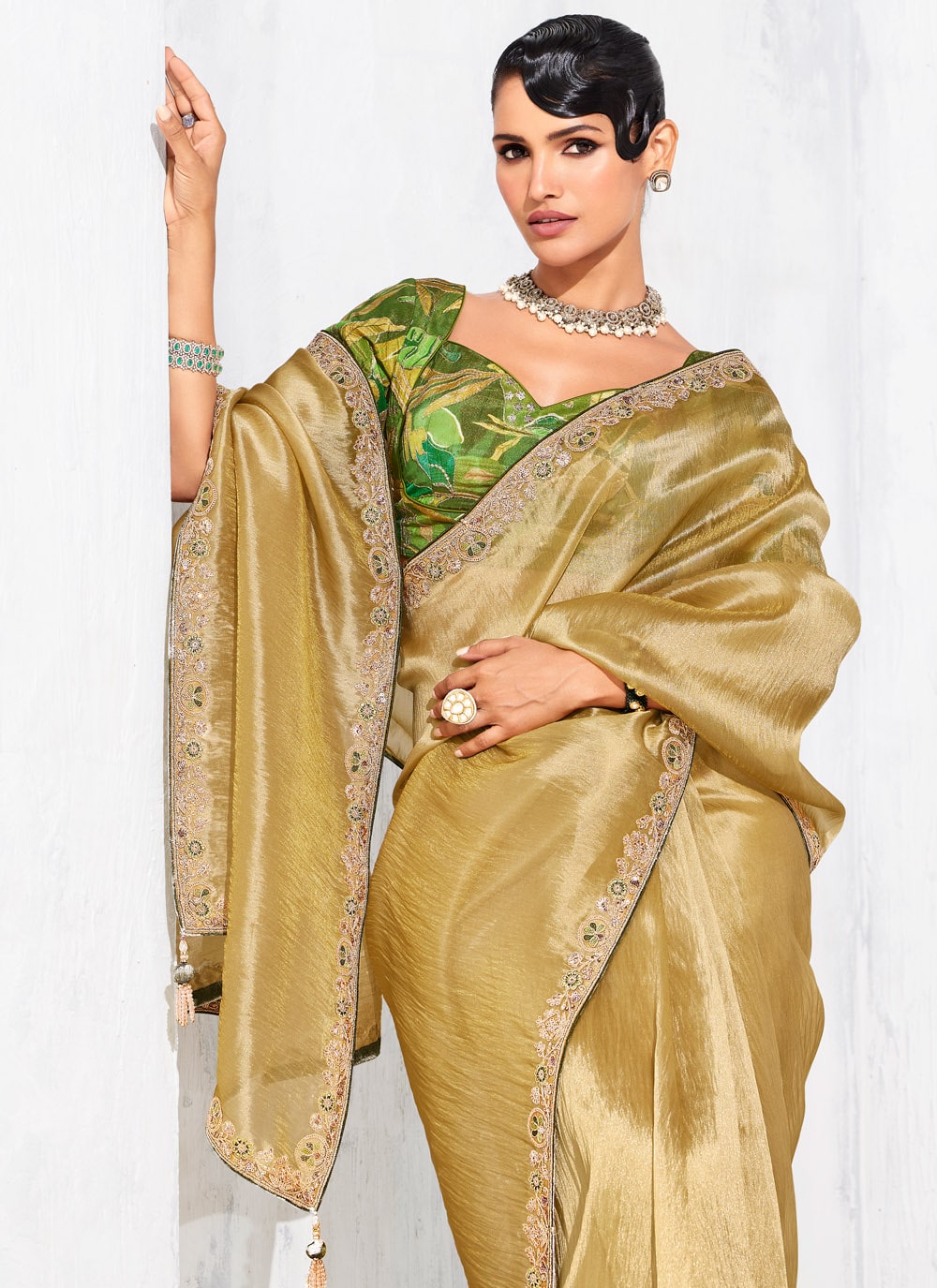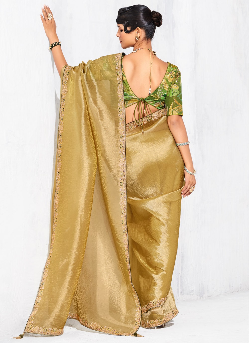 This sea green saree combines traditional craftsmanship with contemporary style. The delicate border embroidery adds a regal touch, making it ideal for engagement ceremonies, cultural functions and festive events. Comes with matching blouse.