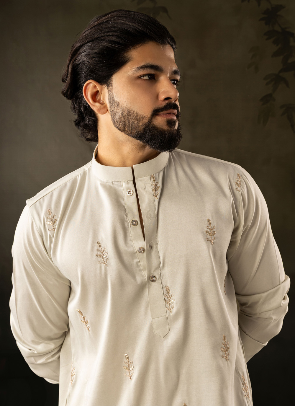 Refresh your festive collection with this embroidered rayon green kurta pyjama. The lively green shade reflects confidence and positivity, while the delicate embroidery adds a graceful traditional finish.