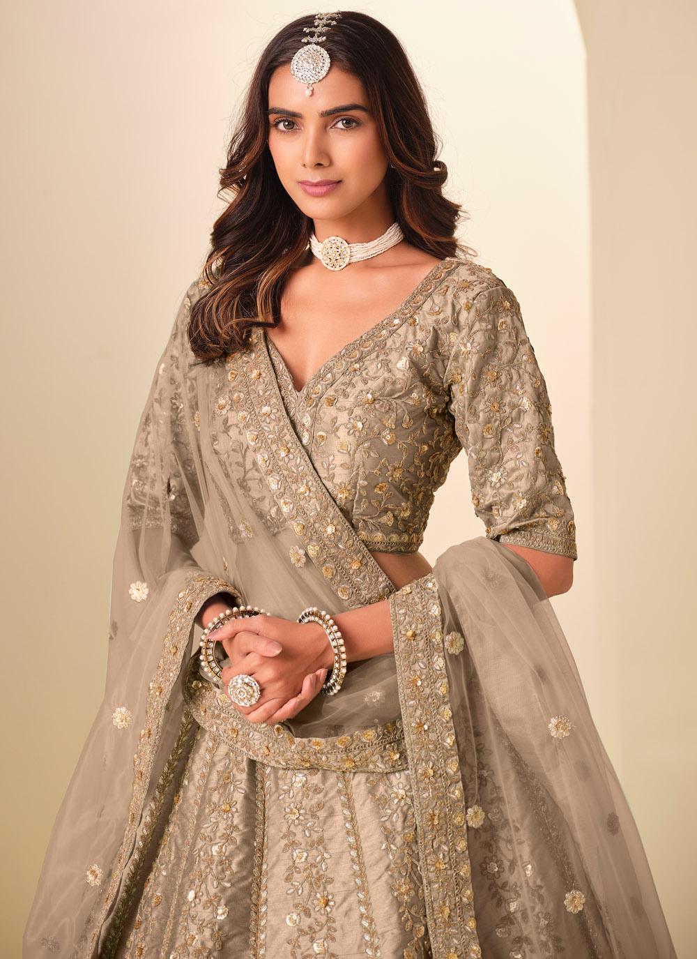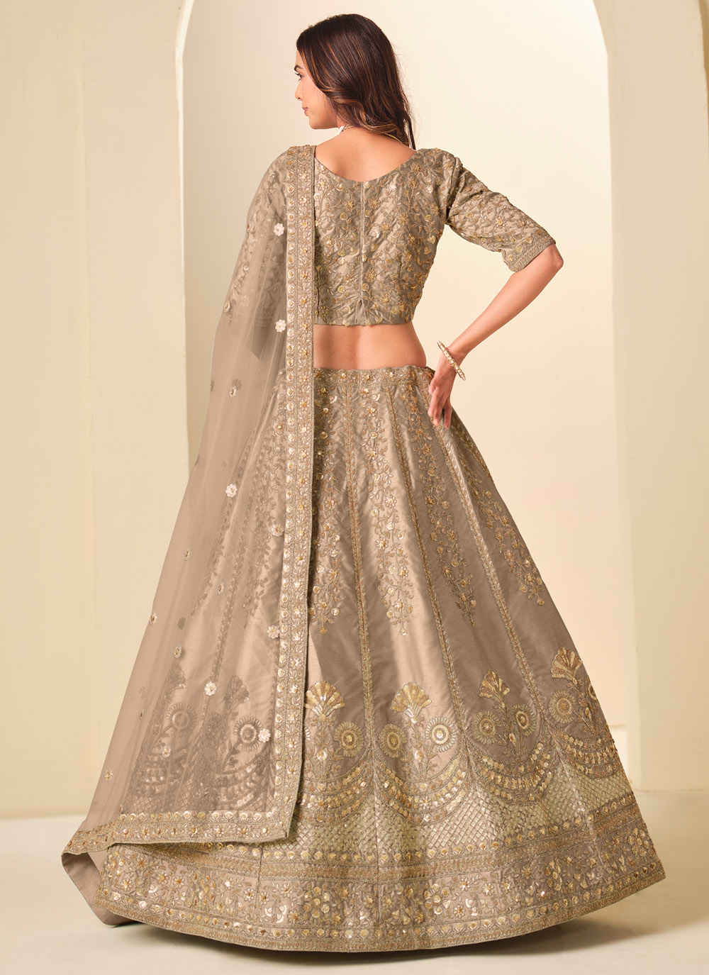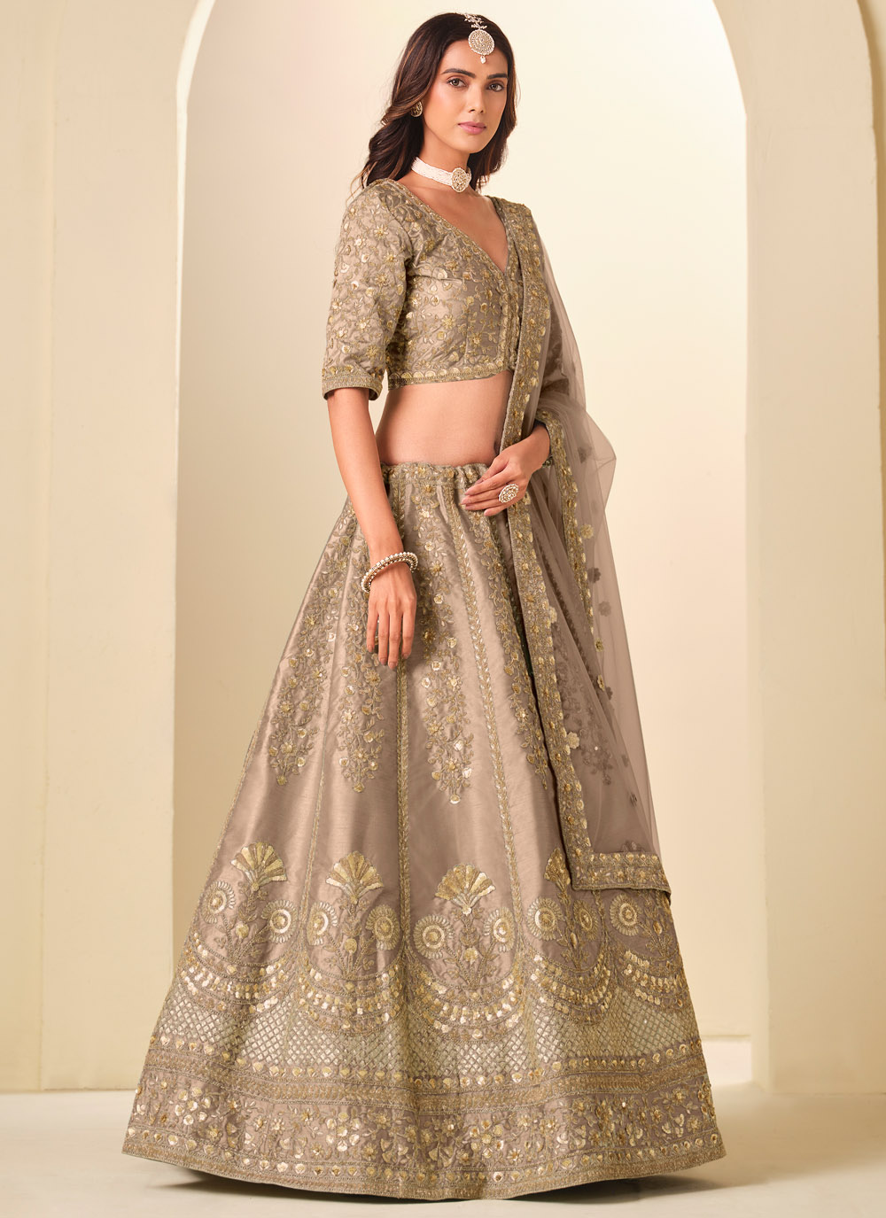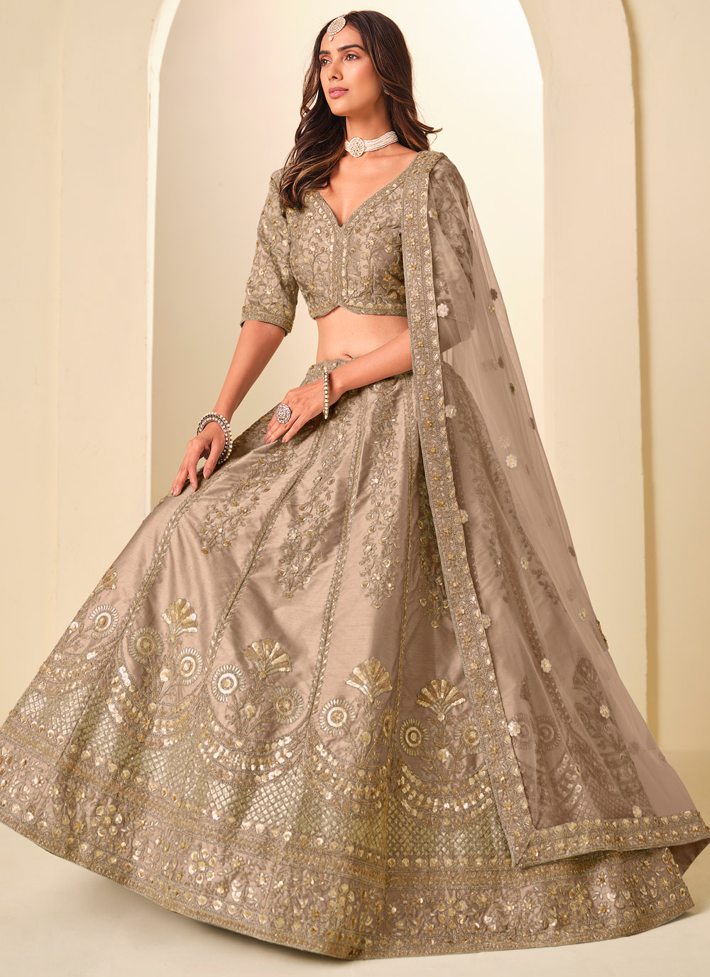 Designed to impress, this Embroidered Brown Art Silk Lehenga Choli showcases fine resham embroidery highlighted with sequins work. The deep tone and premium craftsmanship give it a bold yet elegant look. Comes with matching choli and dupatta.