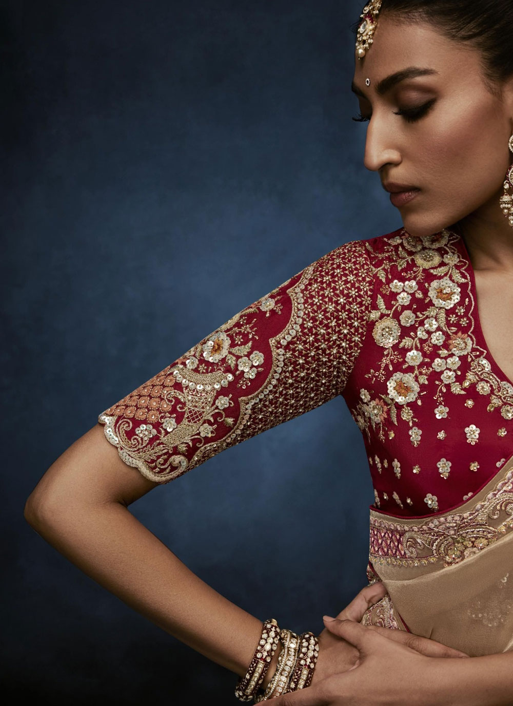 Enhance your ethnic style with this Fancy Fabric Beige Khatli Border Embroidered Classic Wedding Saree. The elegant beige colour paired with intricate Khatli embroidery creates a refined and stylish appearance. Comes with matching blouse.