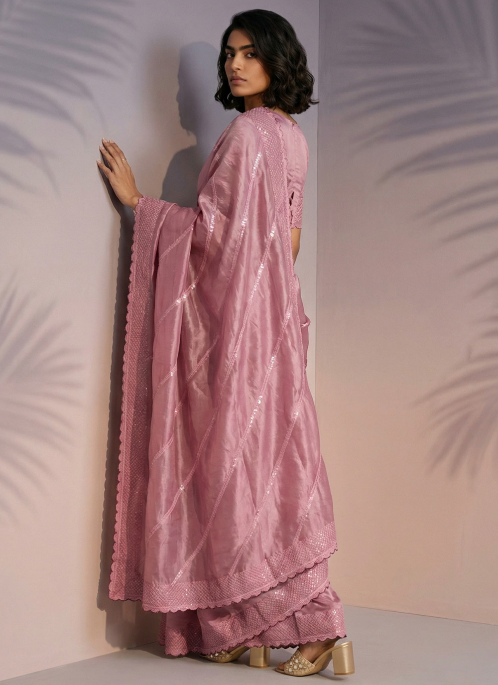 Celebrate in style with this Classic Pink Designer Saree featuring sequins embroidery. The balanced blend of traditional appeal and modern shine makes it a versatile outfit for engagement ceremonies and festive events. Comes with matching blouse.