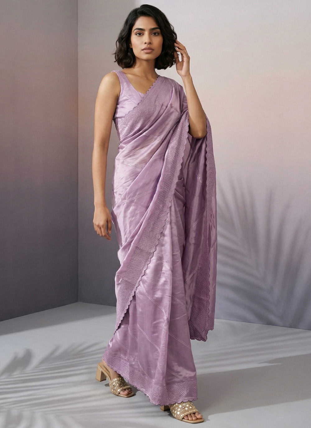 Make a stylish statement with this Mauve Sequins Embroidered Trendy Saree designed for modern elegance. The intricate sequin detailing adds subtle sparkle, while the lightweight fancy fabric ensures comfort throughout the day. Comes with matching blouse.