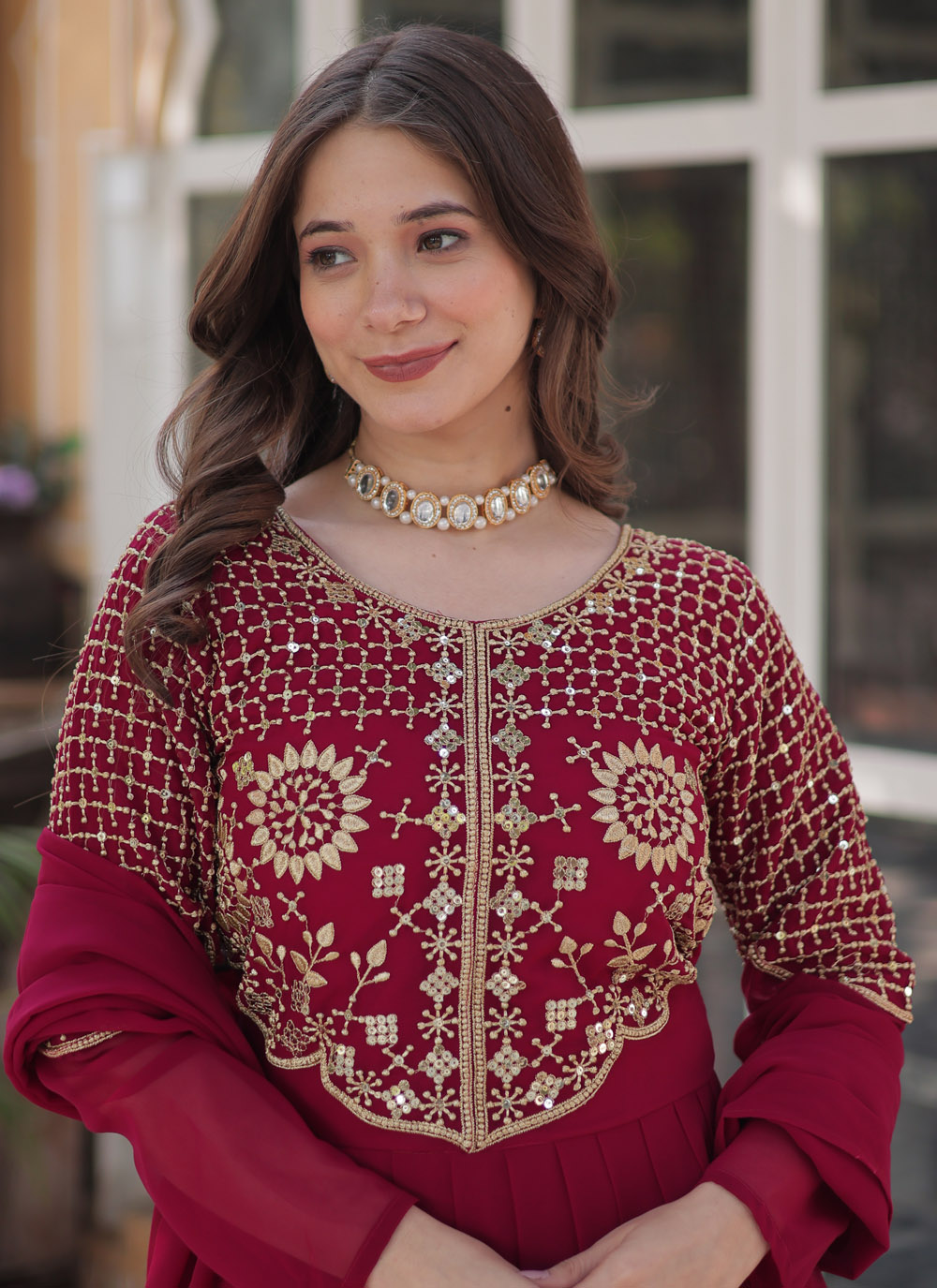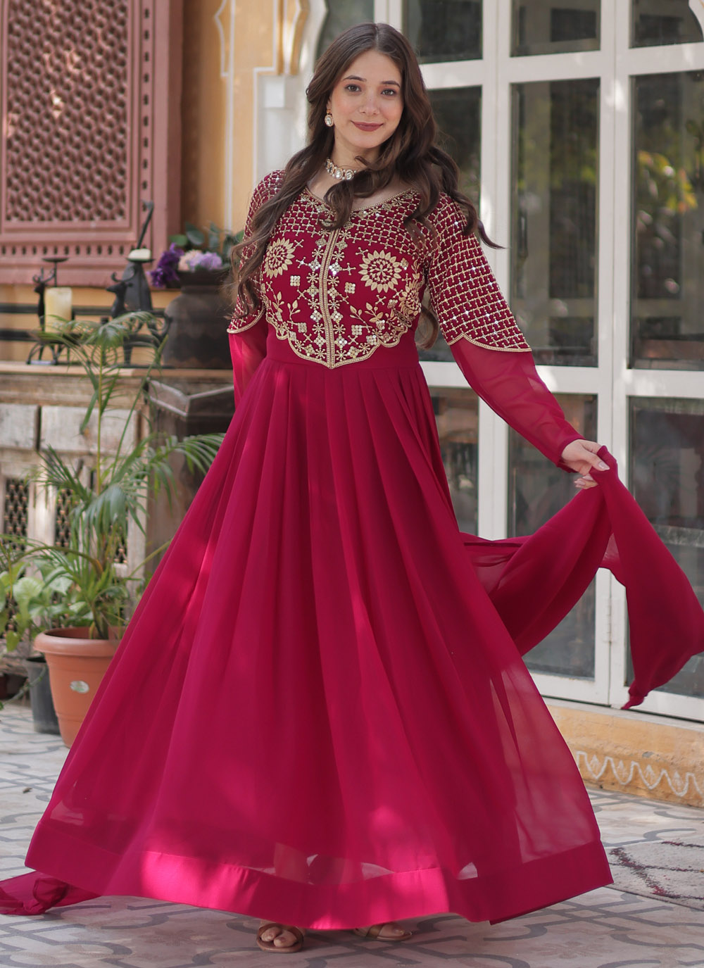 Designed for the modern woman, this pink embroidered gown brings together delicate sequins work, rich fabric, and a regal look. Perfect for bridesmaids, special occasions, and celebratory gatherings, this gown is a timeless addition to your festive collection. Comes with matching dupatta.