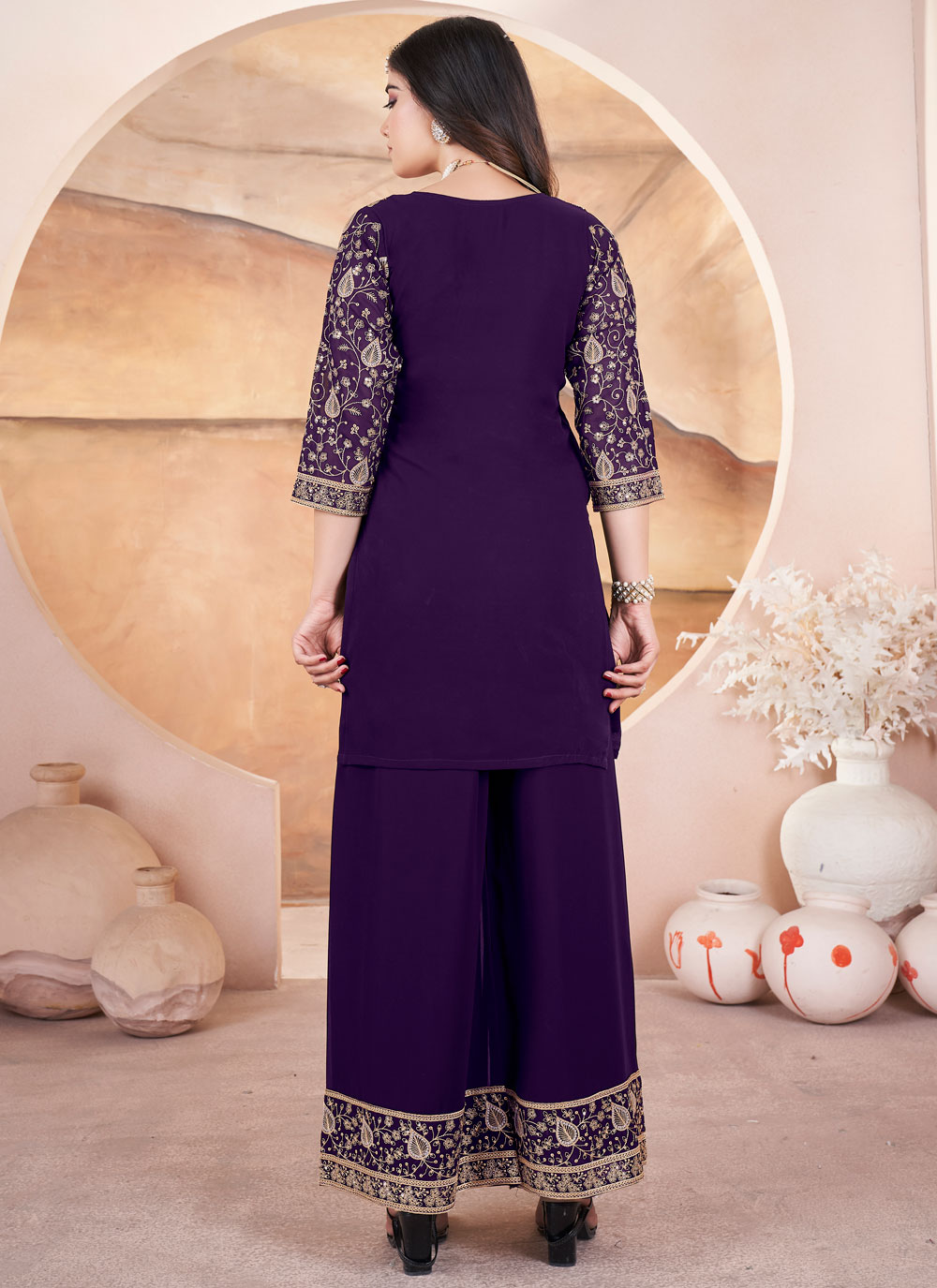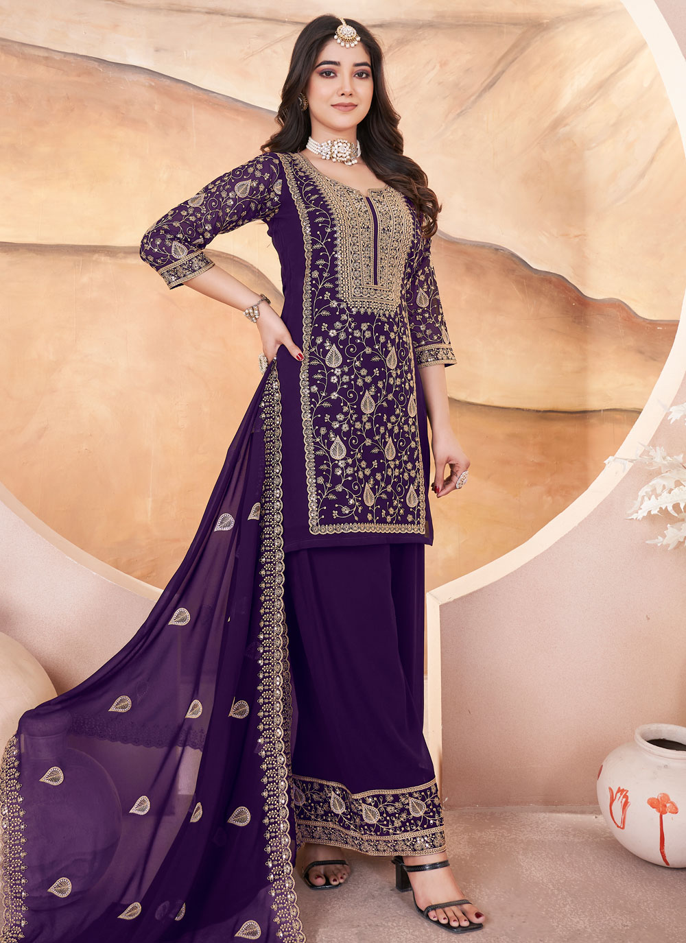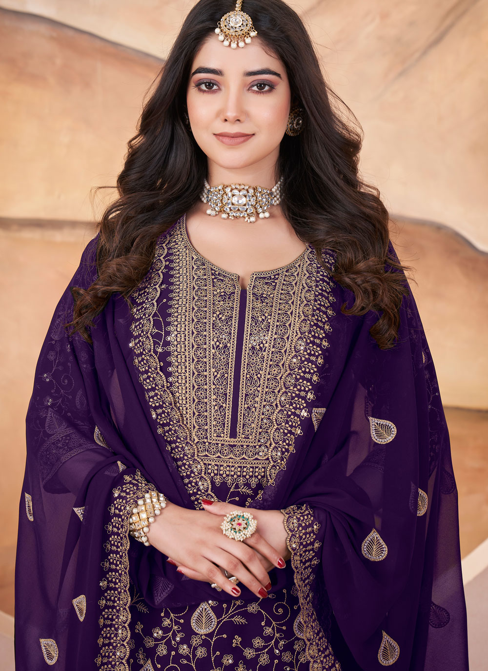 This Georgette Embroidered Sequins Purple Salwar Kameez, with a matching bottom and dupatta, features intricate embroidery and shimmering sequins. Ideal for weddings and special occasions, it offers elegance, comfort, and effortless style.