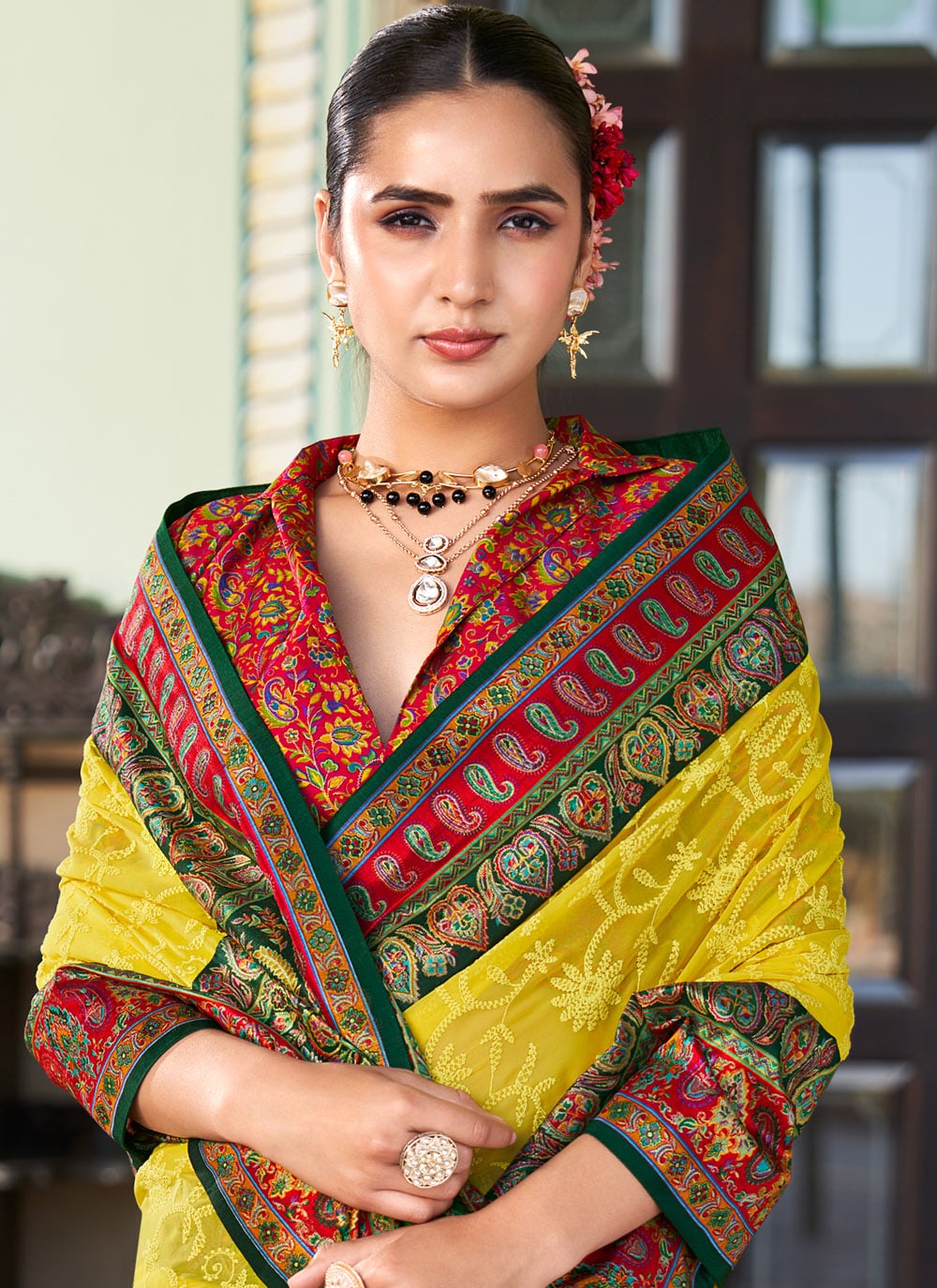 This Traditional Yellow Saree in Georgette brings together timeless Lucknowi handwork and cheerful elegance. Ideal for ceremonial wear, its flowy drape and delicate embroidery create a look that’s festive, refined and effortlessly graceful. Comes with matching blouse.