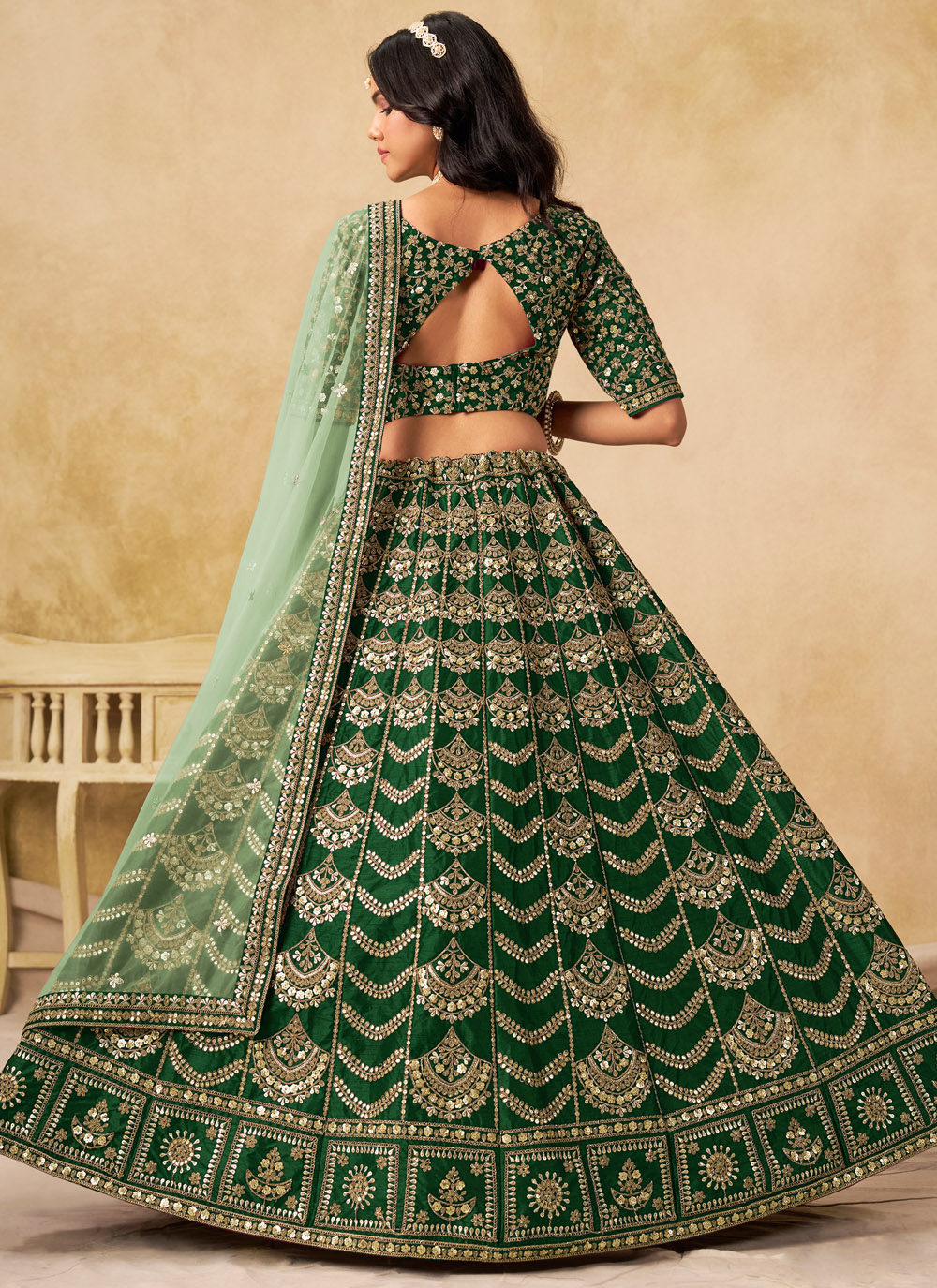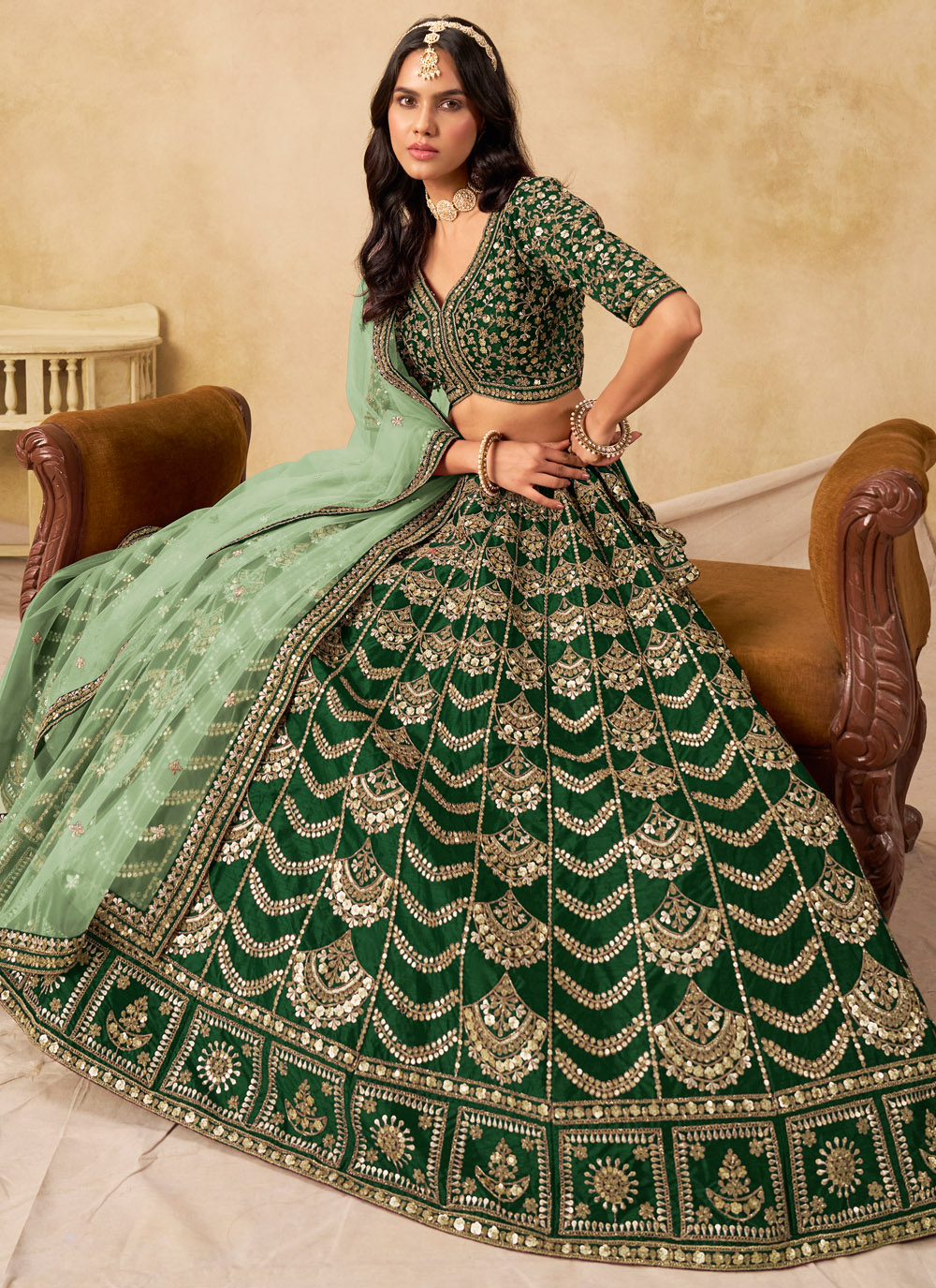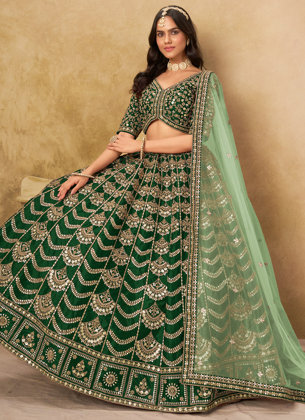 The green shade adds sophistication and freshness to your ethnic styling. Paired with a matching dupatta, this outfit strikes the perfect balance between modern fashion and cultural richness, making you look effortlessly stylish. Comes with matching choli and dupatta.