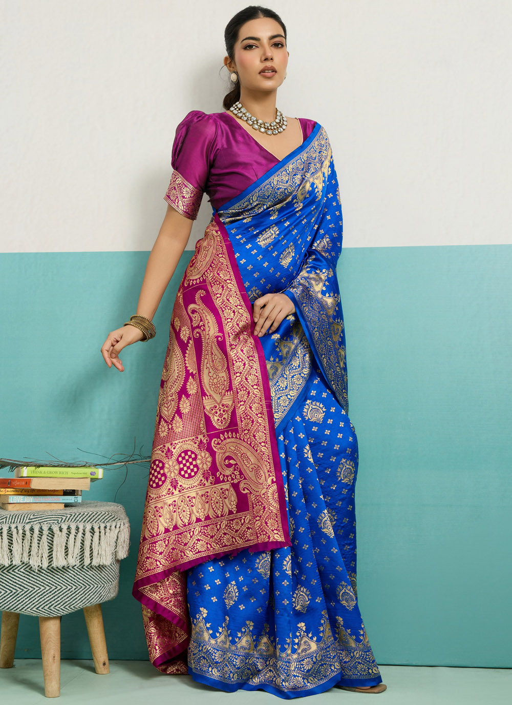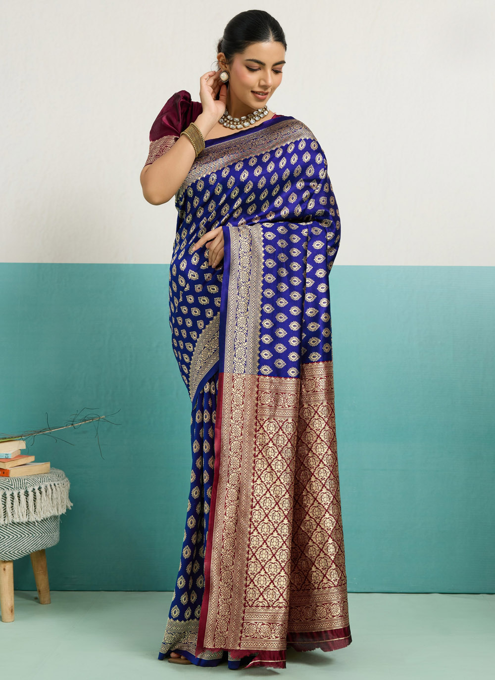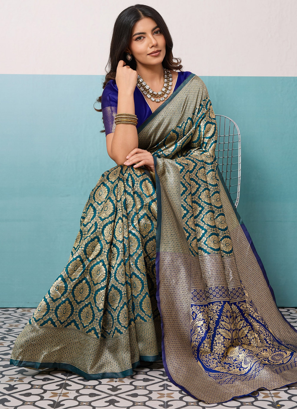 This green Banarasi silk saree highlights exceptional craftsmanship with finely detailed zari woven patterns. The premium silk material provides natural shine and comfort, ensuring a refined and polished appearance. Comes with matching blouse.