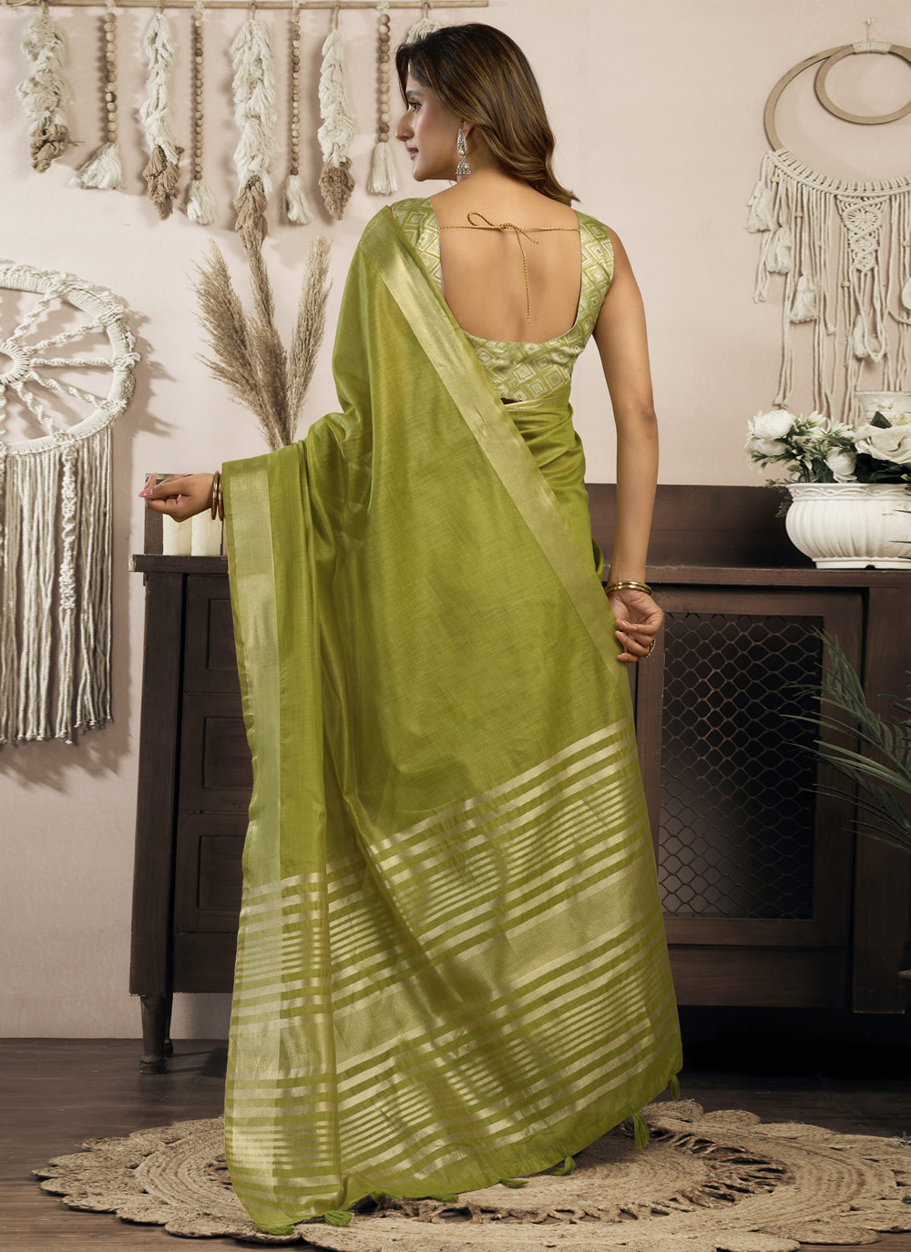 This plain green cotton saree is ideal for women who love minimal yet graceful festive wear. The smooth texture and calming shade make it suitable for cultural events and festive mornings. Comes with matching blouse.