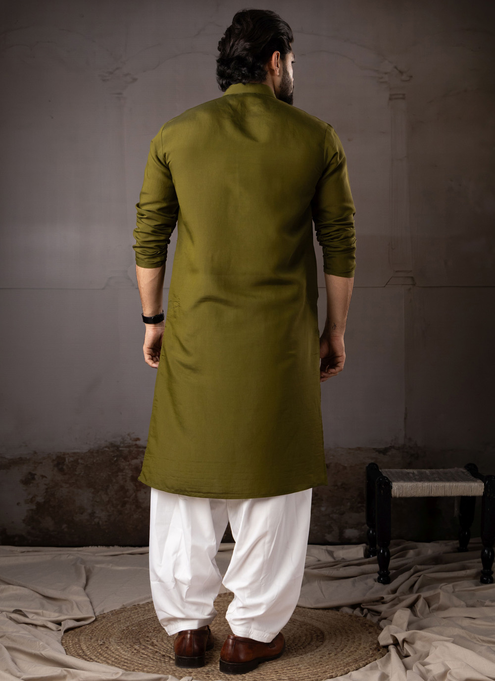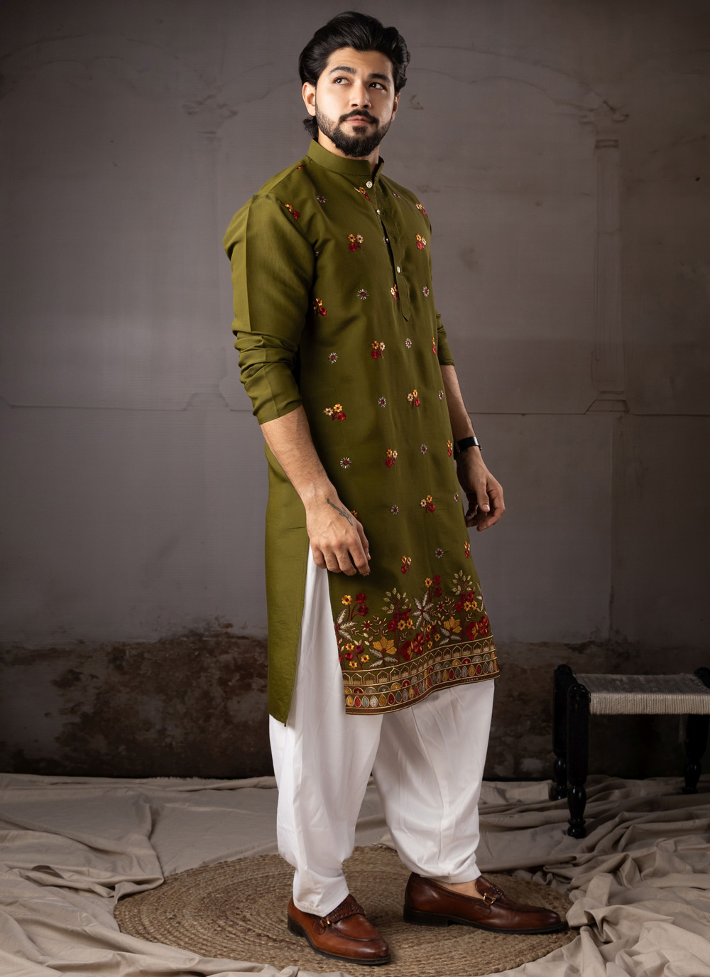This green silk kurta pyjama blends traditional craftsmanship with modern elegance. The rich silk fabric ensures comfort and graceful draping, while the beautifully embroidered detailing enhances its designer appeal.
