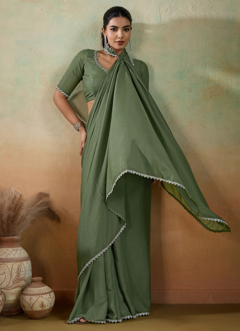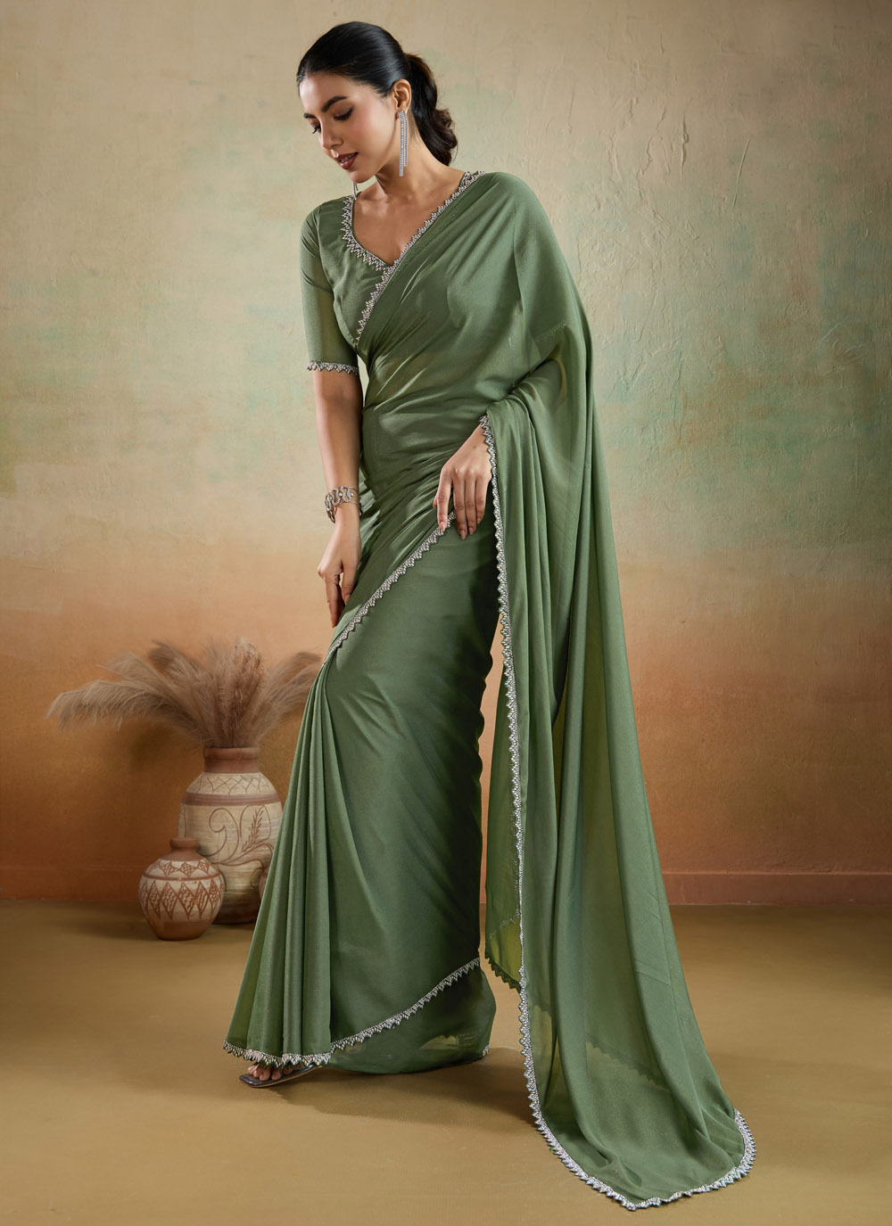 Embrace classic beauty with our stunning Green Georgette Saree. The lightweight fabric provides a comfortable drape, while the intricate lace border adds a touch of traditional sophistication, making it an ideal choice for effortless style. Comes with matching blouse.