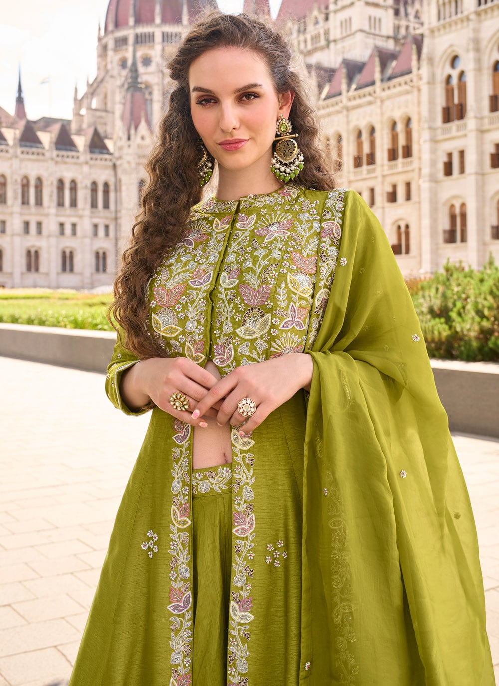 Elevate your ethnic style with this Green Organza Palazzo Salwar Suit, beautifully adorned with intricate embroidery. The airy organza fabric ensures a soft, graceful drape, while the palazzo design adds a modern touch to traditional wear. Comes with matching bottom and dupatta.