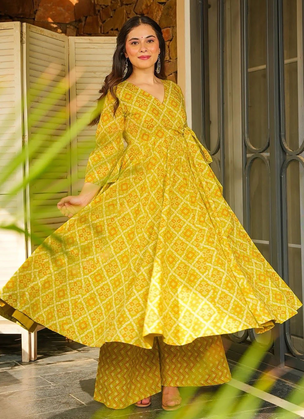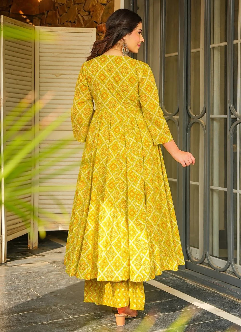 Add a touch of tradition to your wardrobe with this Green Digital Printed Anarkali Suit. Made from breathable rayon, this readymade ensemble is perfect for functions, get-togethers or festivals. Comes with matching bottom and dupatta.