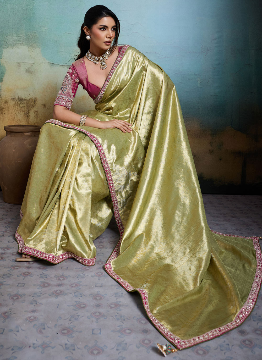 | Fabric | Banarasi Silk, Tissue |