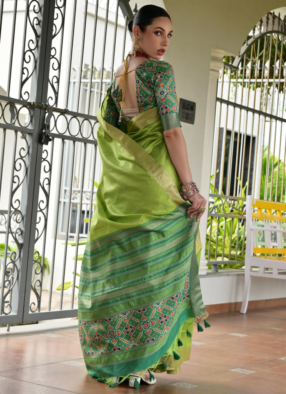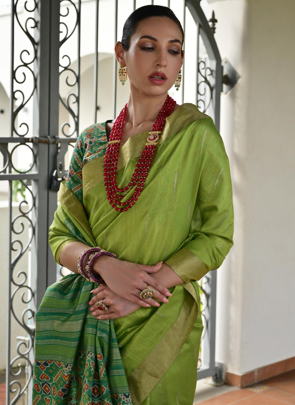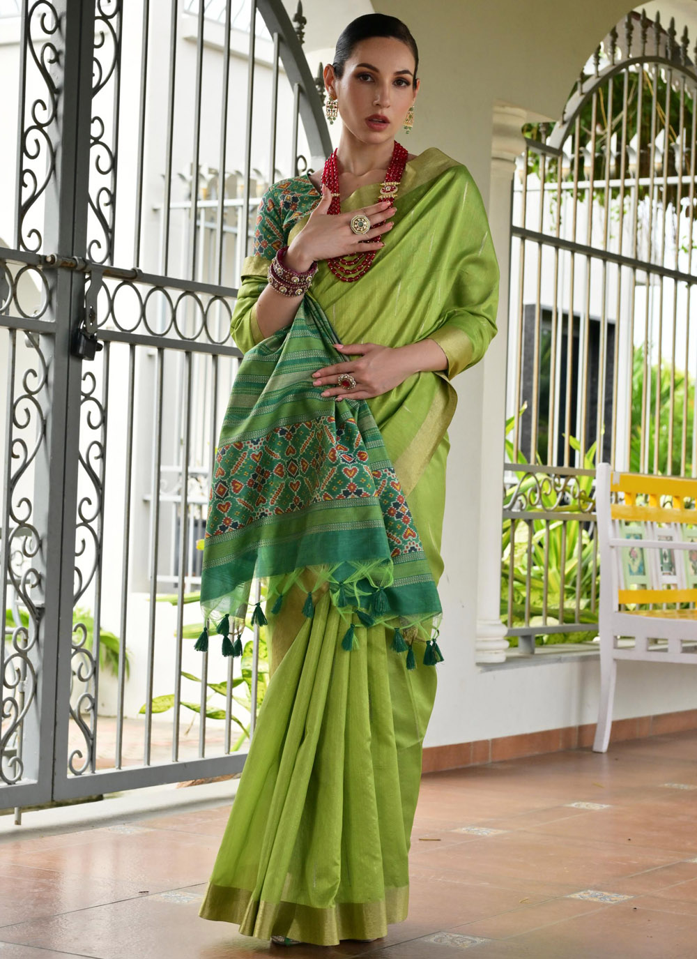 Upgrade your ethnic collection with this beautifully crafted designer khadi silk saree. The rich green tone and elegant zari work offer a perfect balance of comfort, style and tradition. Comes with matching blouse.