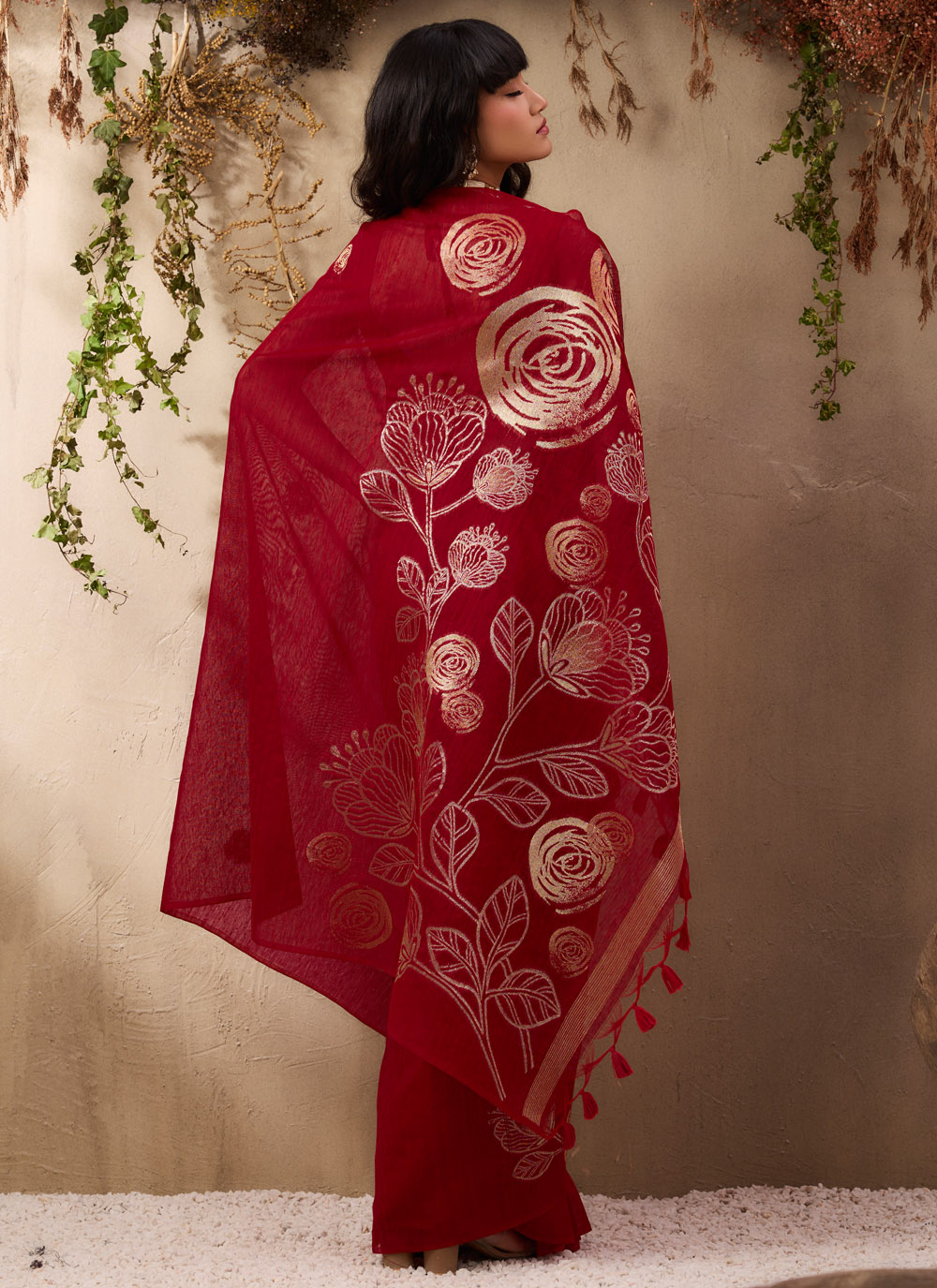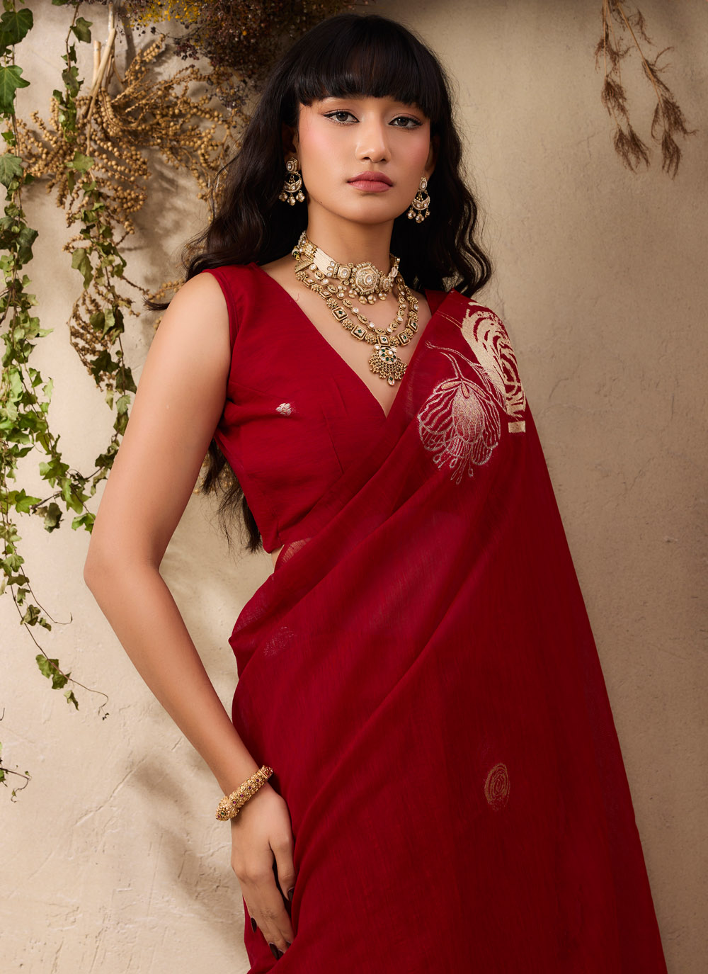 Celebrate timeless tradition with this Handloom Silk Weaving Traditional Red Saree. Woven with care using classic handloom techniques, this saree showcases rich silk texture and detailed weaving that reflects cultural heritage. Comes with matching blouse.