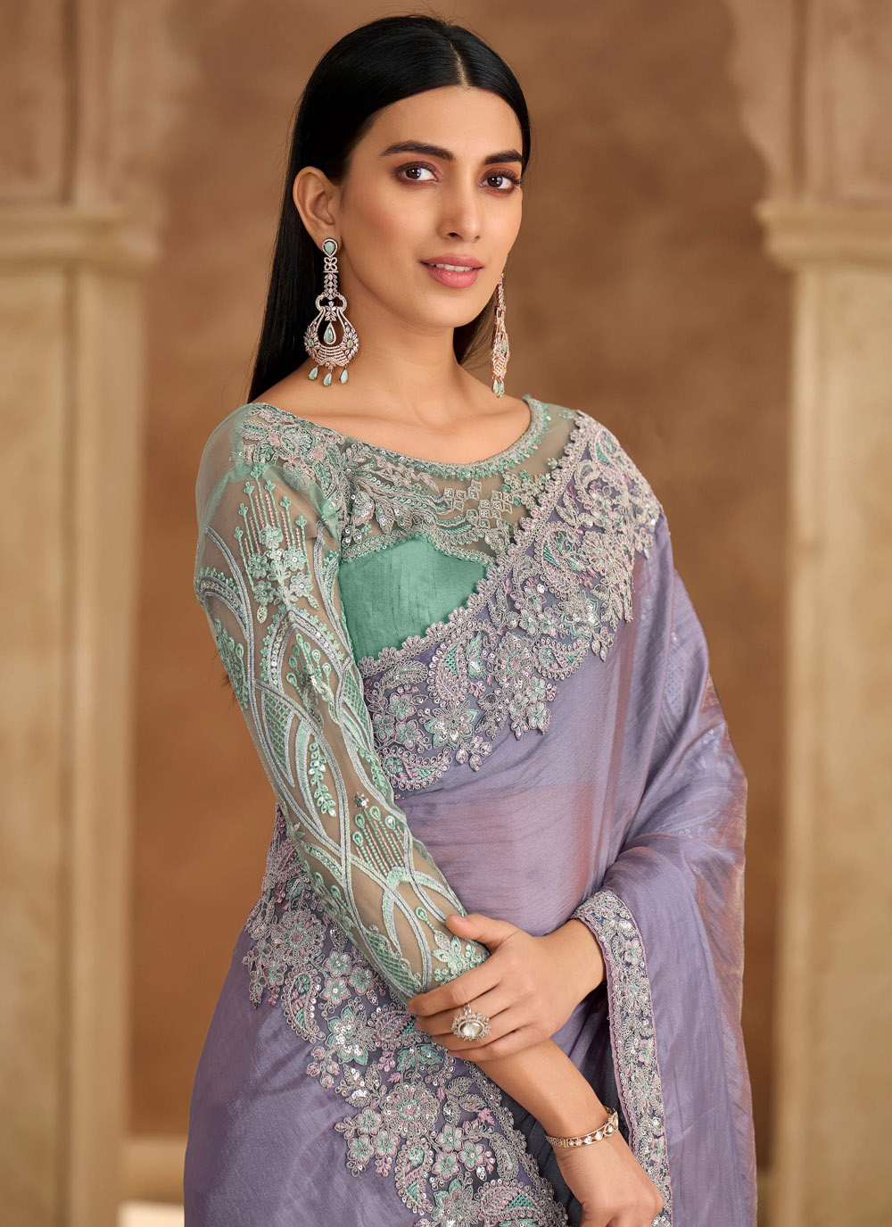 Step into modern charm with this Trendy Lavender Chiffon Saree featuring Border Embroidery. The soothing lavender shade paired with refined embroidery creates a graceful and fashionable look. Comes with matching blouse.