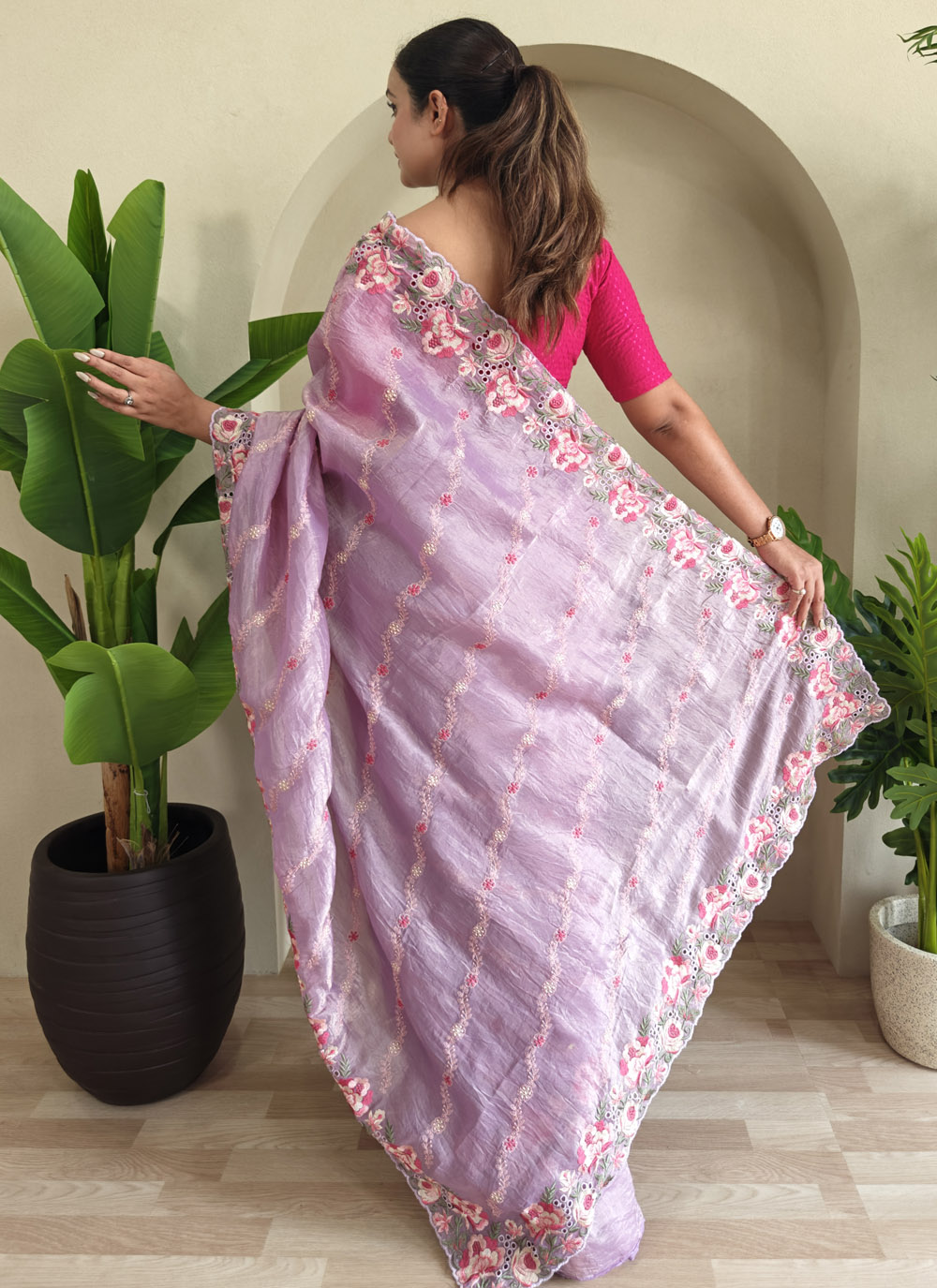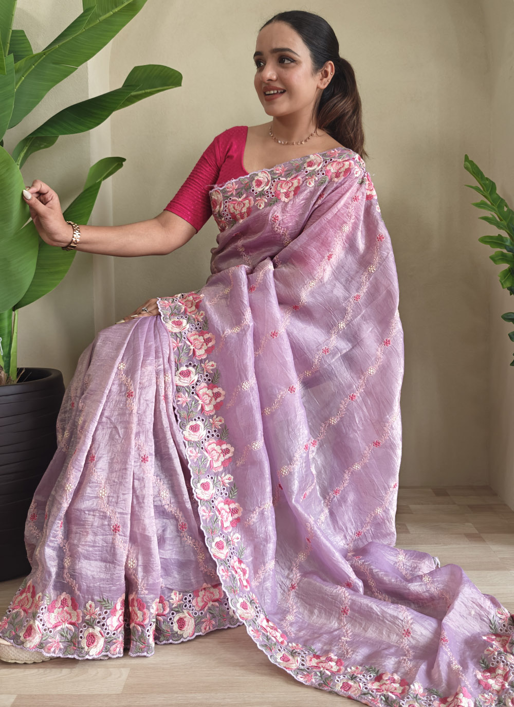 Make a stunning impression with this Trendy Lavender Crush Silk Saree, featuring elegant embroidery and handcrafted cutwork details. Whether it's a wedding, festival, or formal gathering, this saree ensures you look effortlessly regal and stylish. Comes with matching blouse.
