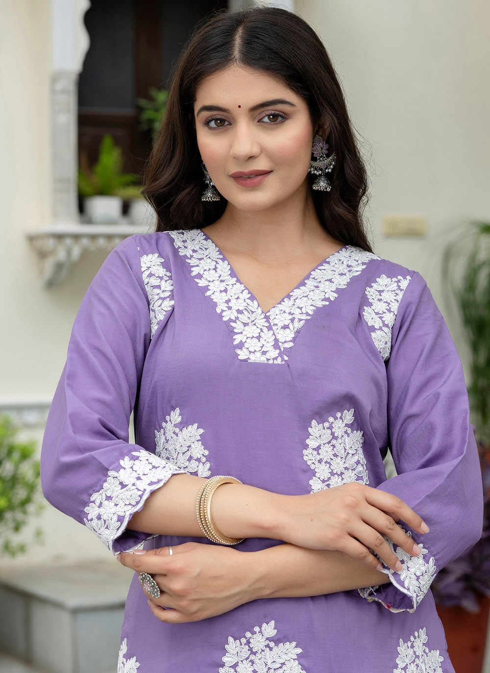 Bring effortless charm to your wardrobe with this Lavender Silk Blend Embroidered Trendy Casual Kurti. Crafted from a soft silk blend fabric. The delicate embroidery adds a refined touch that enhances its modern casual appeal.