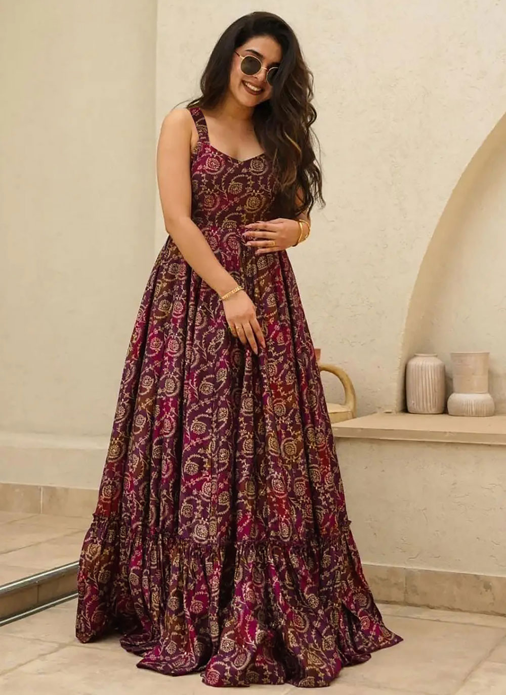 Stand out in style with the Magenta Digital Printed Designer Readymade Gown. With its vibrant magenta color and intricate digital print, this gown offers a modern and fashionable look. The readymade design ensures a comfortable, flattering fit for any occasion.