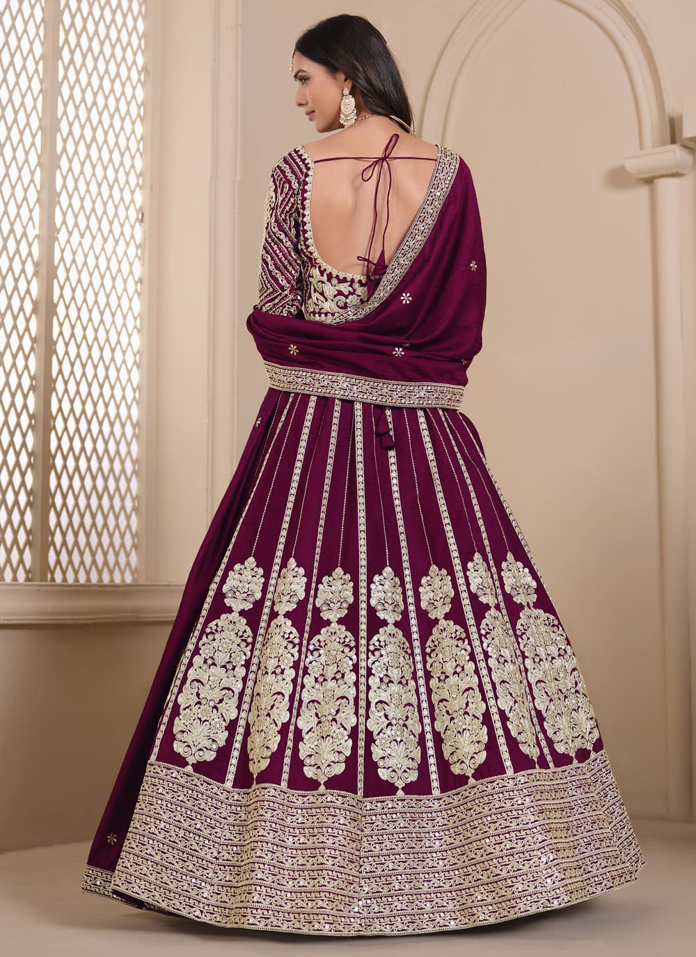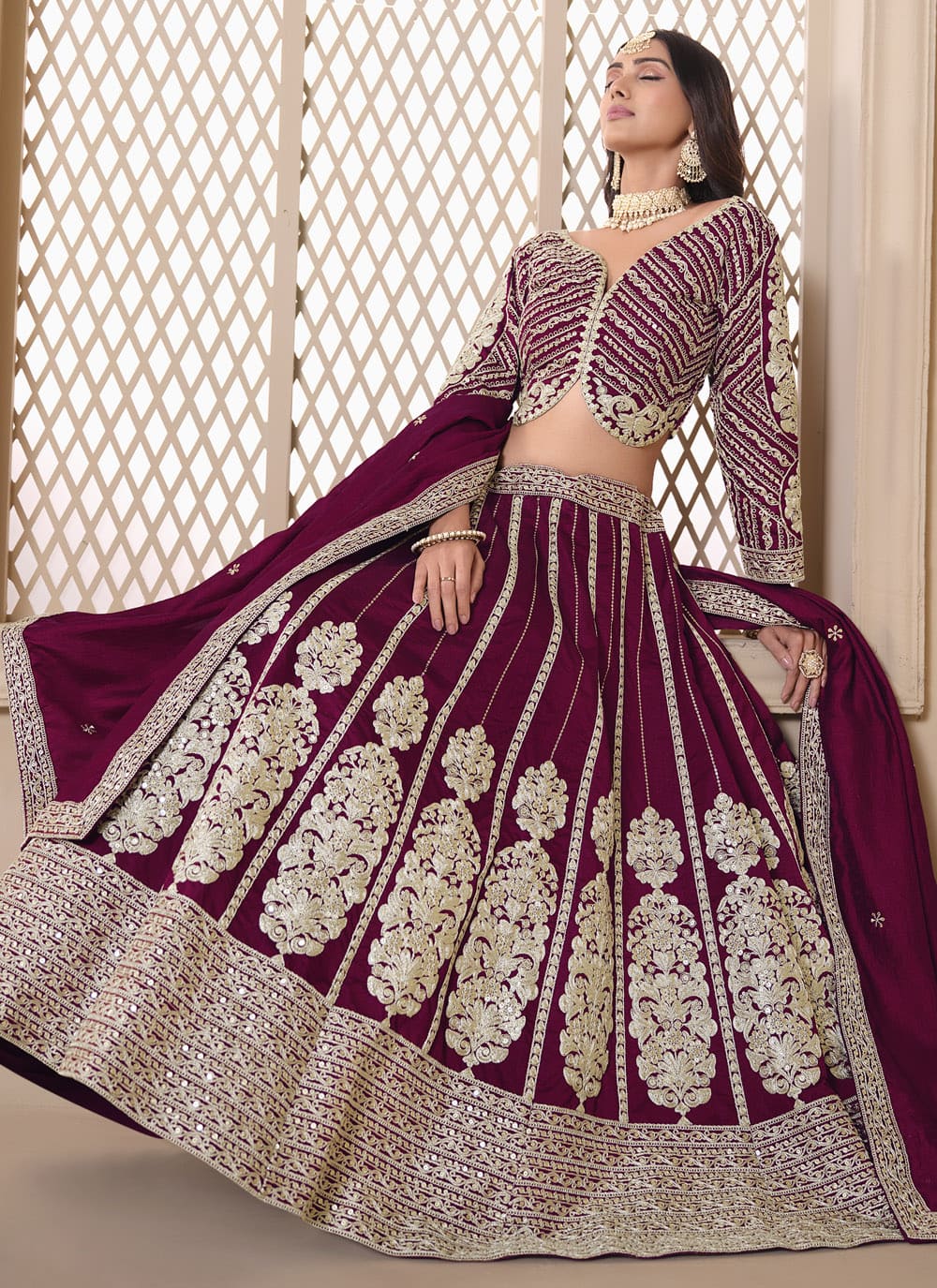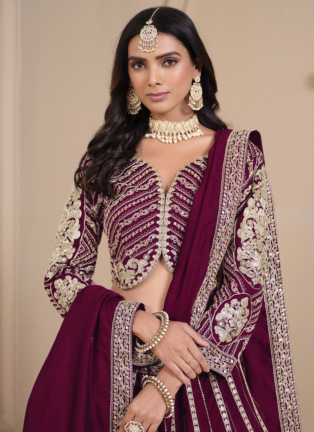 This Maroon Embroidered Lehenga Choli is designed for those who love traditional attire with a touch of glamour. The shimmering sequins and delicate zari work enhance the rich texture of art silk, ensuring you shine at every grand event, from engagement ceremonies to festive parties. Comes with matching choli and dupatta.