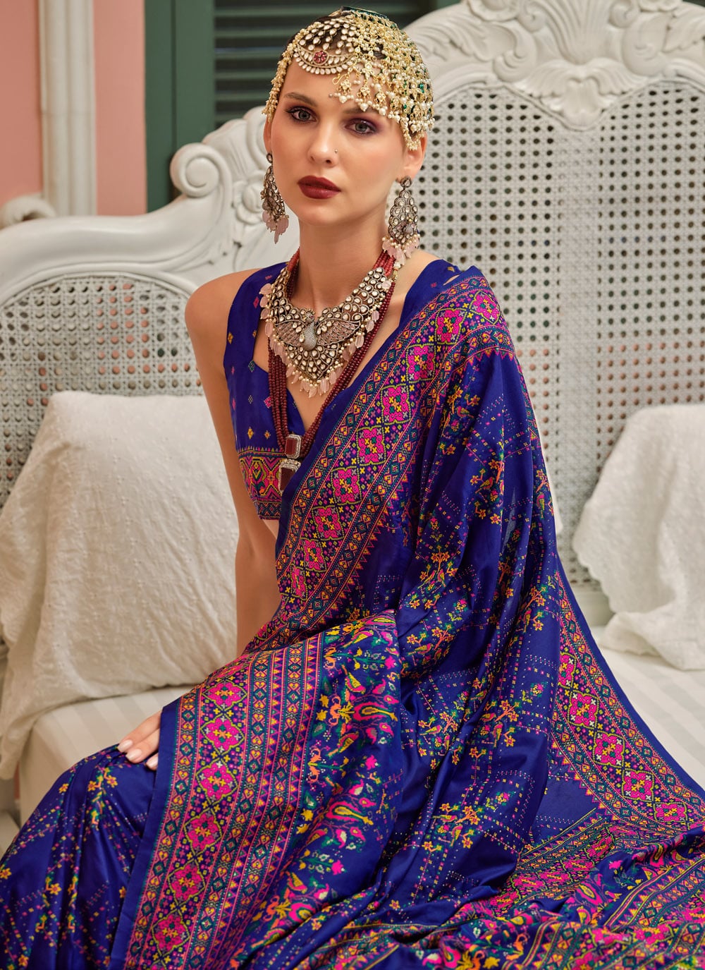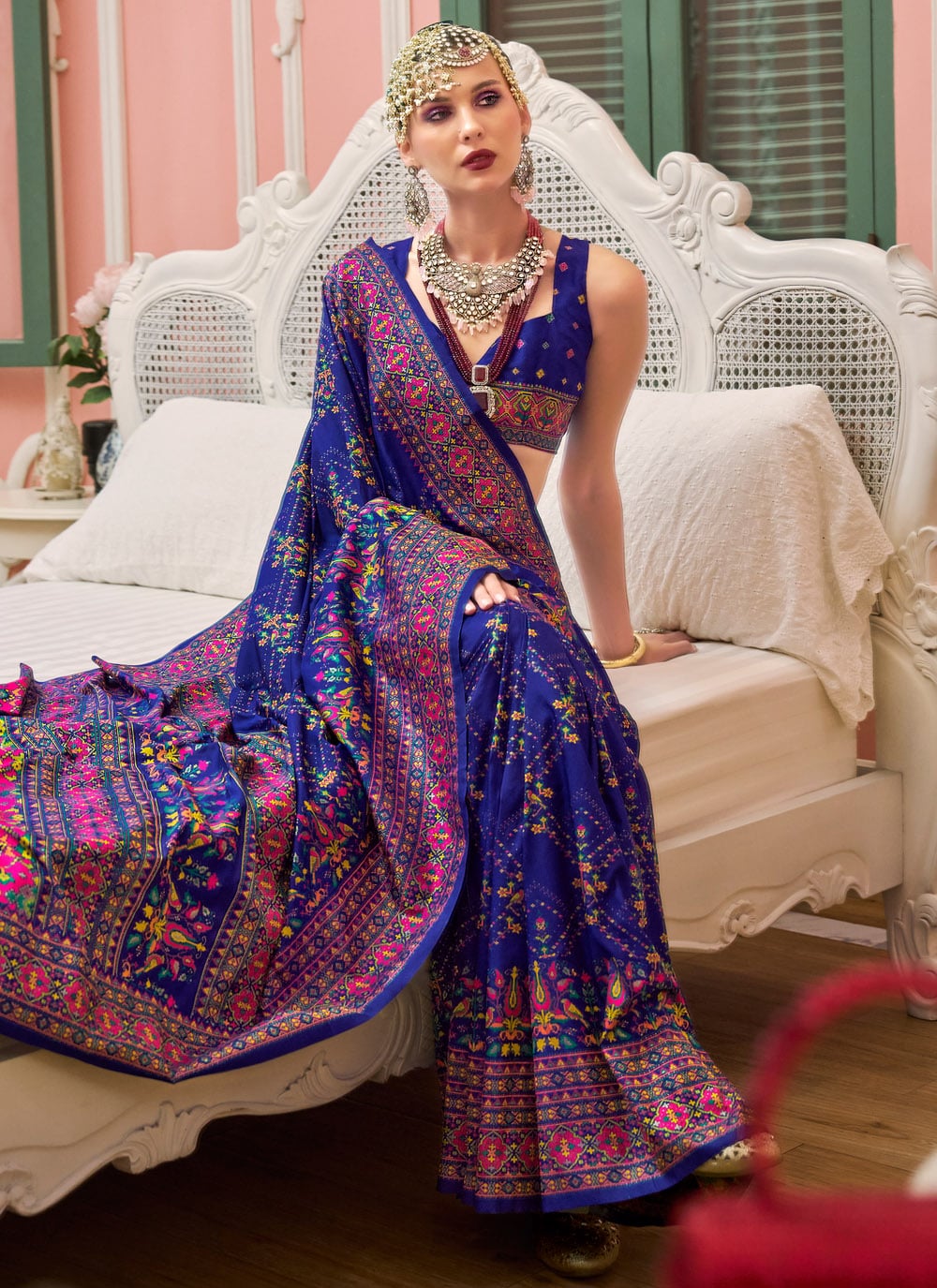 This blue Banarasi silk saree showcases the charm of traditional craftsmanship with its rich Meenakari weaving work. The smooth silk base adds natural sheen, while the multicolored woven motifs bring a regal finish. Designed for special occasions. Comes with matching blouse.