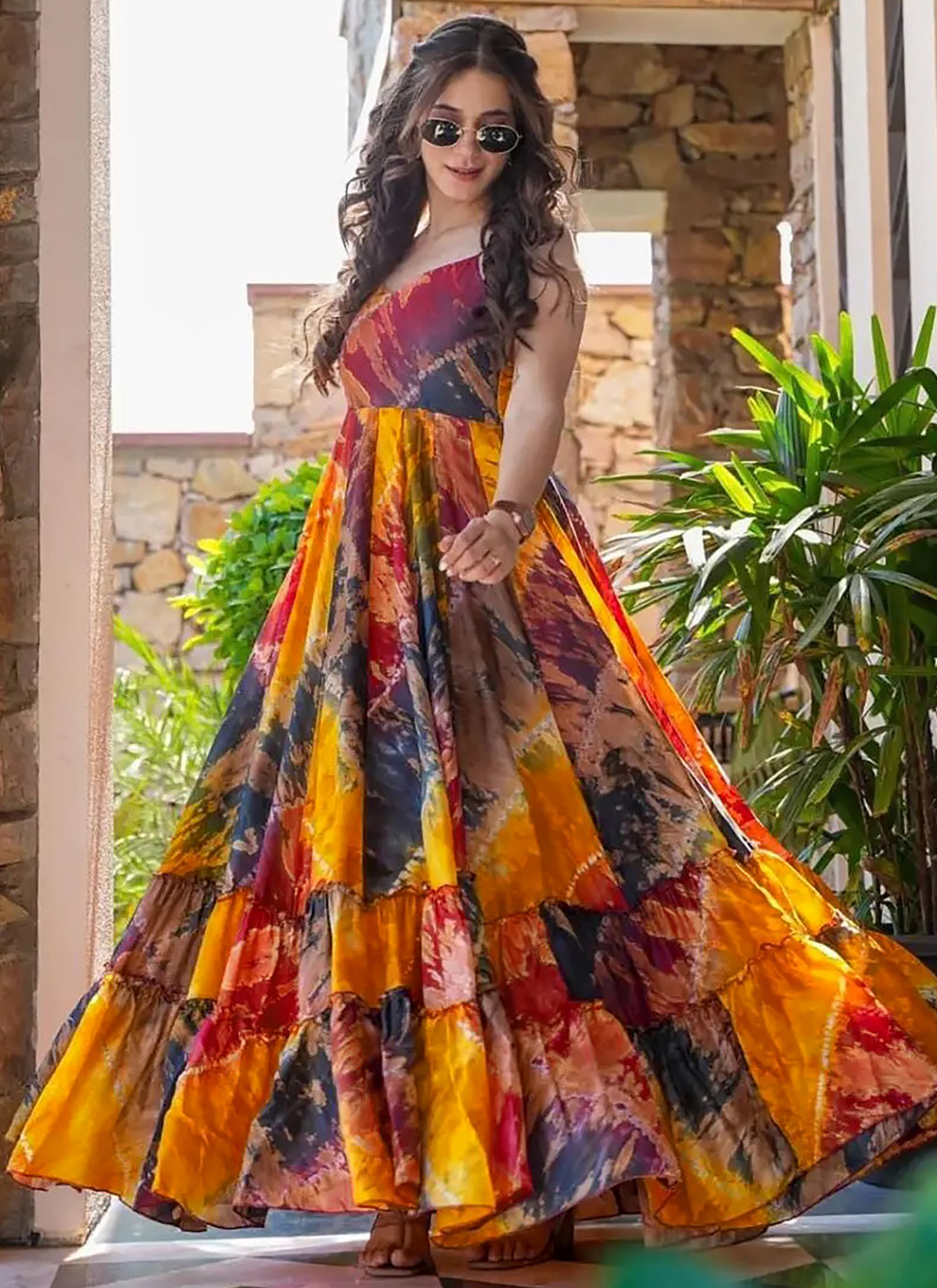 Make a bold fashion statement with the Multi Color Rayon Digital Print Designer Readymade Gown. Featuring a striking digital print and luxurious rayon fabric, this gown offers a ready-to-wear design that is perfect for parties, festive occasions, and casual gatherings.