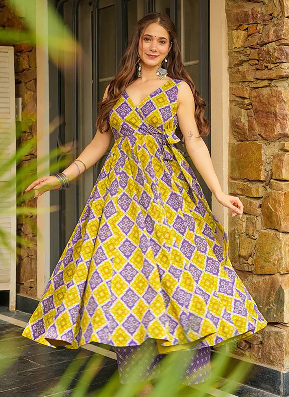 Add a vibrant touch to your ethnic collection with this Multi-Colour Rayon Anarkali Palazzo Suit. Featuring eye-catching digital prints and a breezy silhouette, this outfit offers both comfort and colorful charm for festive or casual wear. Comes with matching bottom and dupatta.