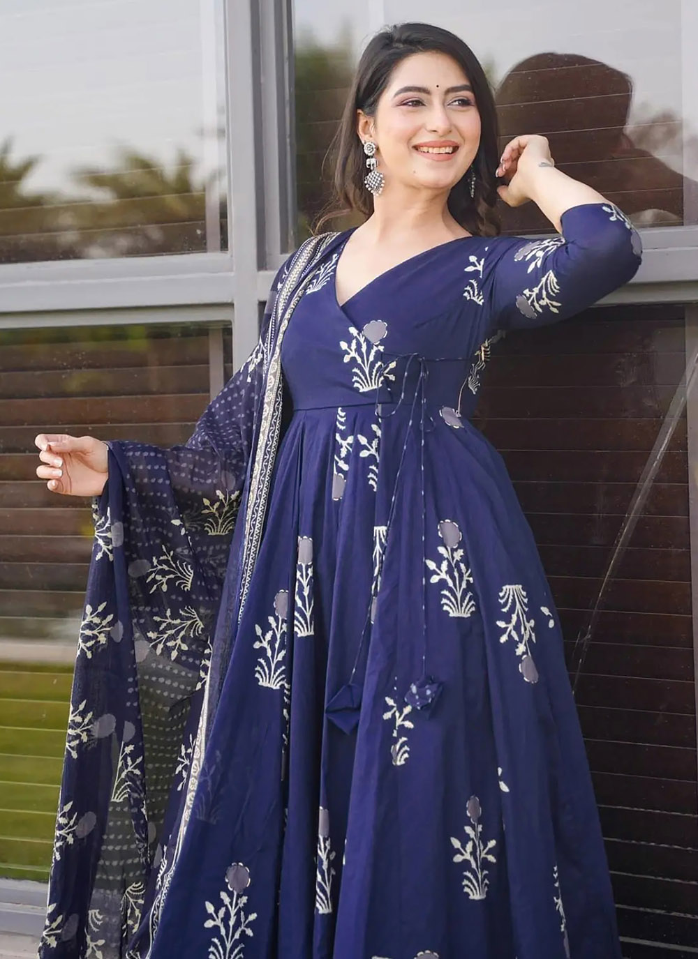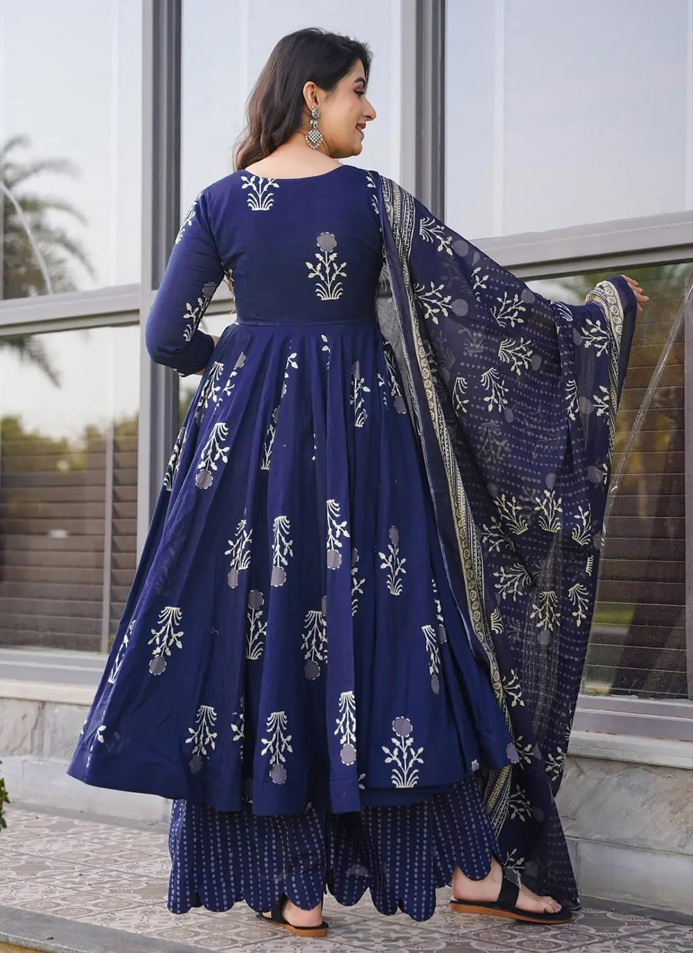 Crafted for modern women, this Muslin Digital Print Navy Blue Readymade Salwar Kameez features a stunning digital print that enhances its beauty. Whether you're attending a casual event or a formal gathering, this outfit is a perfect choice for a graceful look. Comes with matching bottom and dupatta.