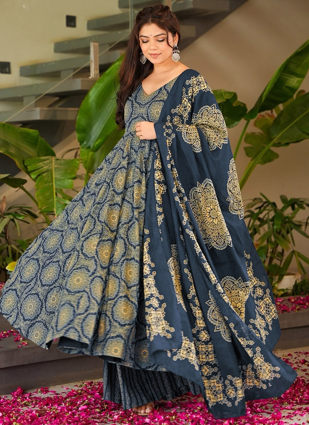 Designed for women who love stylish comfort, this digital printed blue palazzo suit in muslin fabric offers a graceful flow and easy movement. The rich blue tone combined with artistic prints creates a versatile outfit. Comes with matching bottom and dupatta.