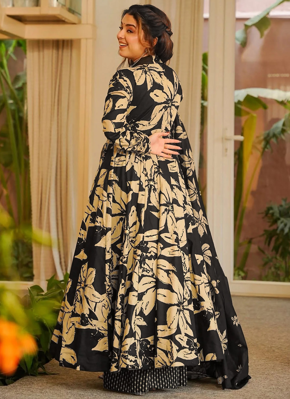 Experience comfort and trend together with this muslin digital printed black salwar kameez. The rich black shade combined with modern digital prints creates a stylish and refined appearance. Comes with matching bottom and dupatta.