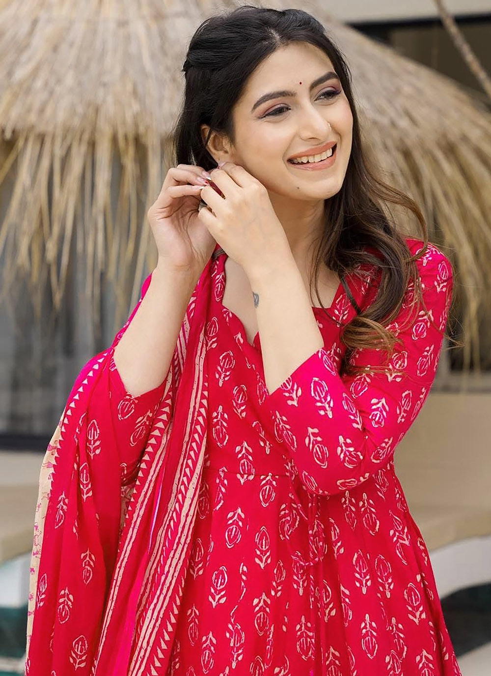 Make a confident style statement with this Red Muslin Digital Printed Salwar Suit designed for modern elegance. The smooth texture of muslin keeps you at ease all day, while the vibrant digital patterns add contemporary charm. Comes with matching bottom and dupatta.