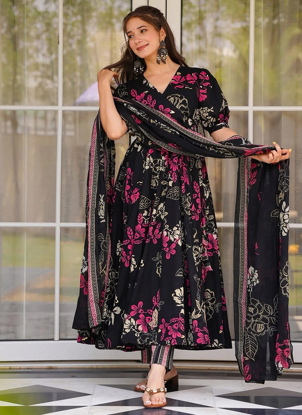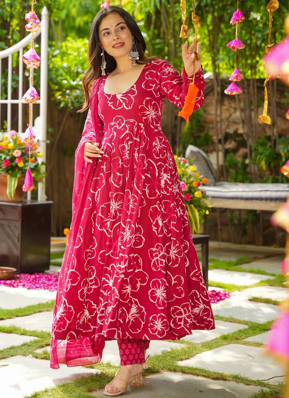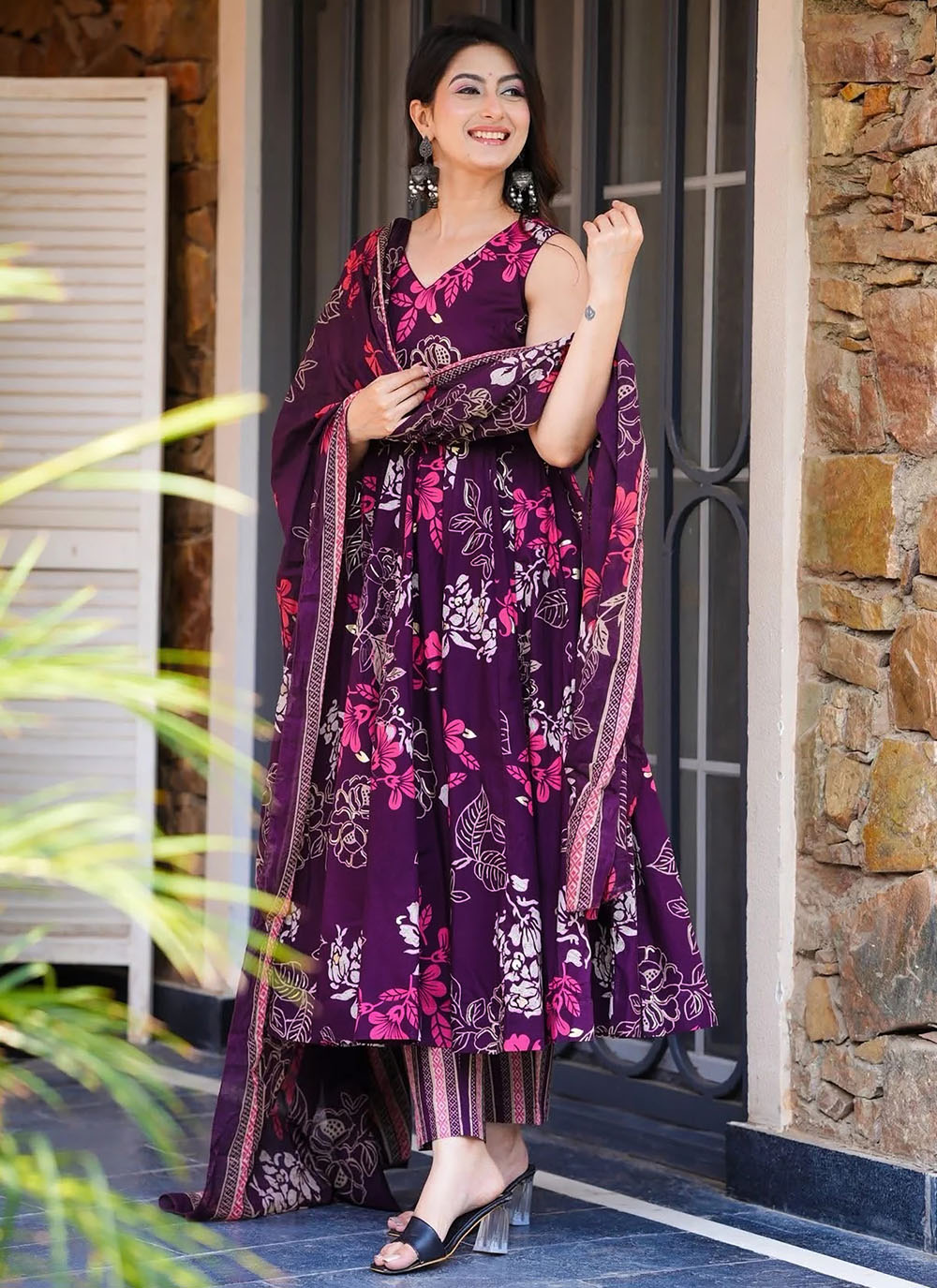Upgrade your ethnic collection with this trendy pink muslin salwar kameez in a chic pant style. The digital print design brings a fresh and vibrant look, while the relaxed fit ensures maximum comfort. Comes with matching bottom and dupatta.