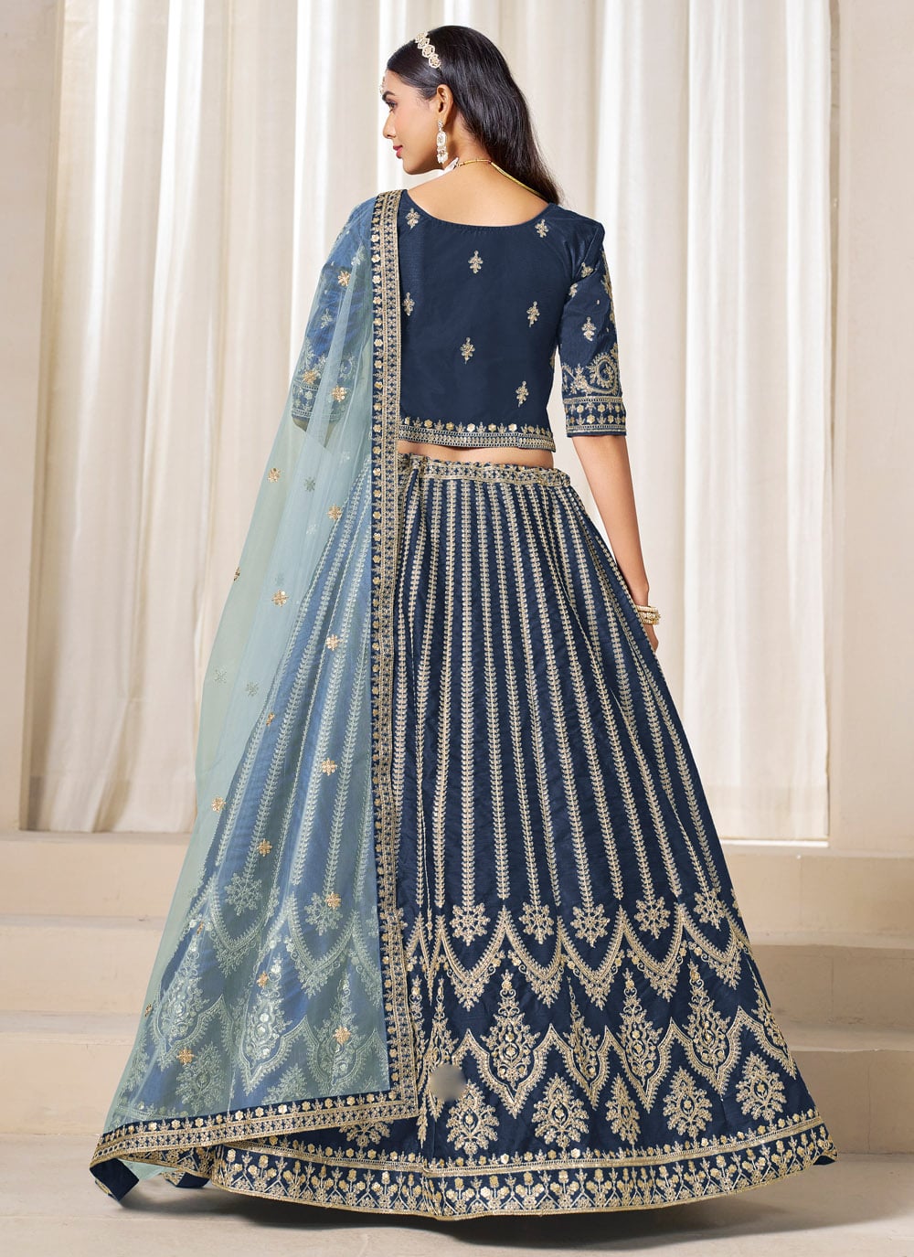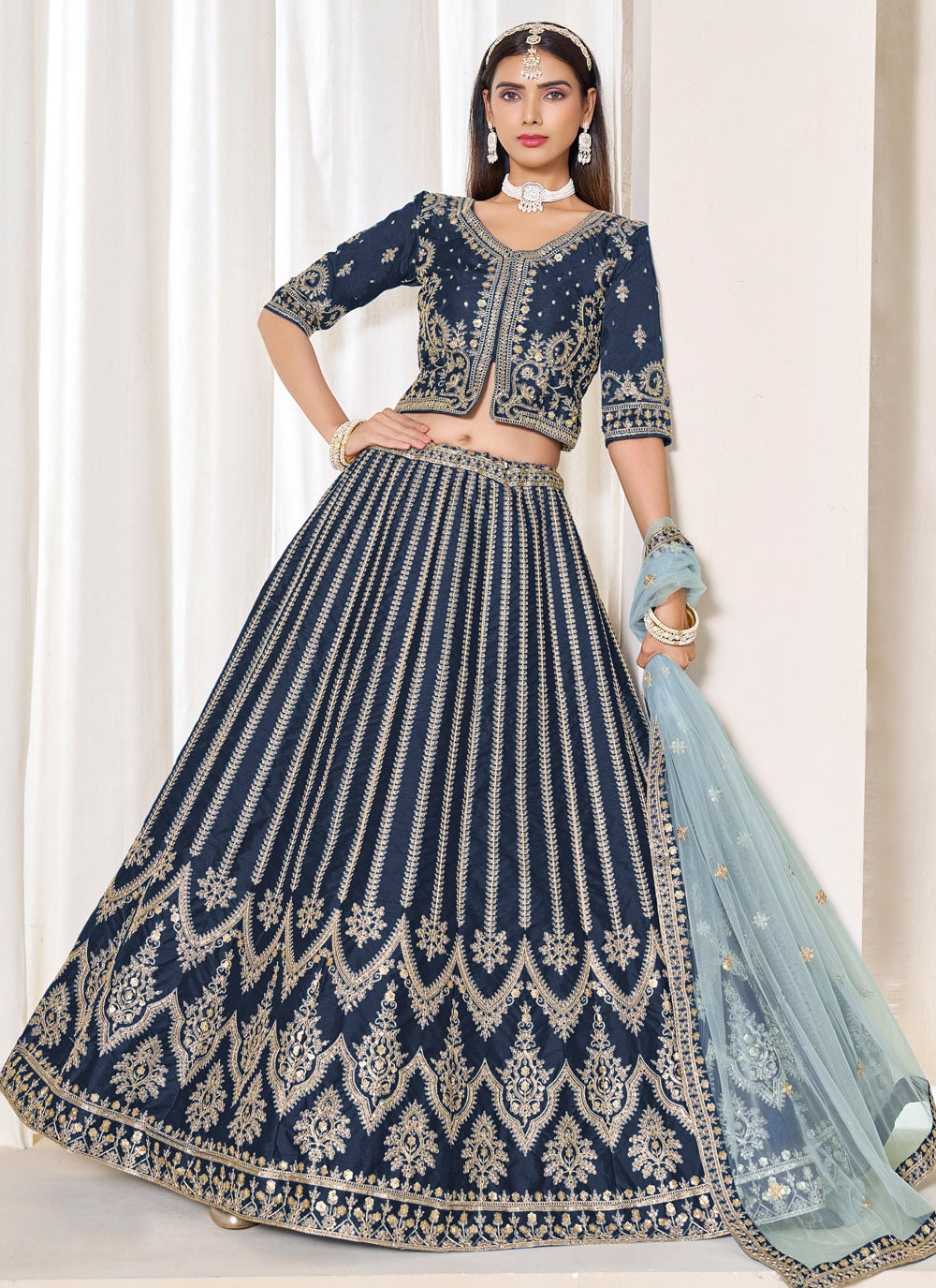 Turn heads at any celebration with this Navy Blue Art Silk Embroidered Trendy Lehenga Choli. The rich navy hue blends modern sophistication with traditional charm. Delicate embroidery work in contrasting tones adds depth and artistry, making the lehenga shimmer with elegance. Comes with matching choli and dupatta.