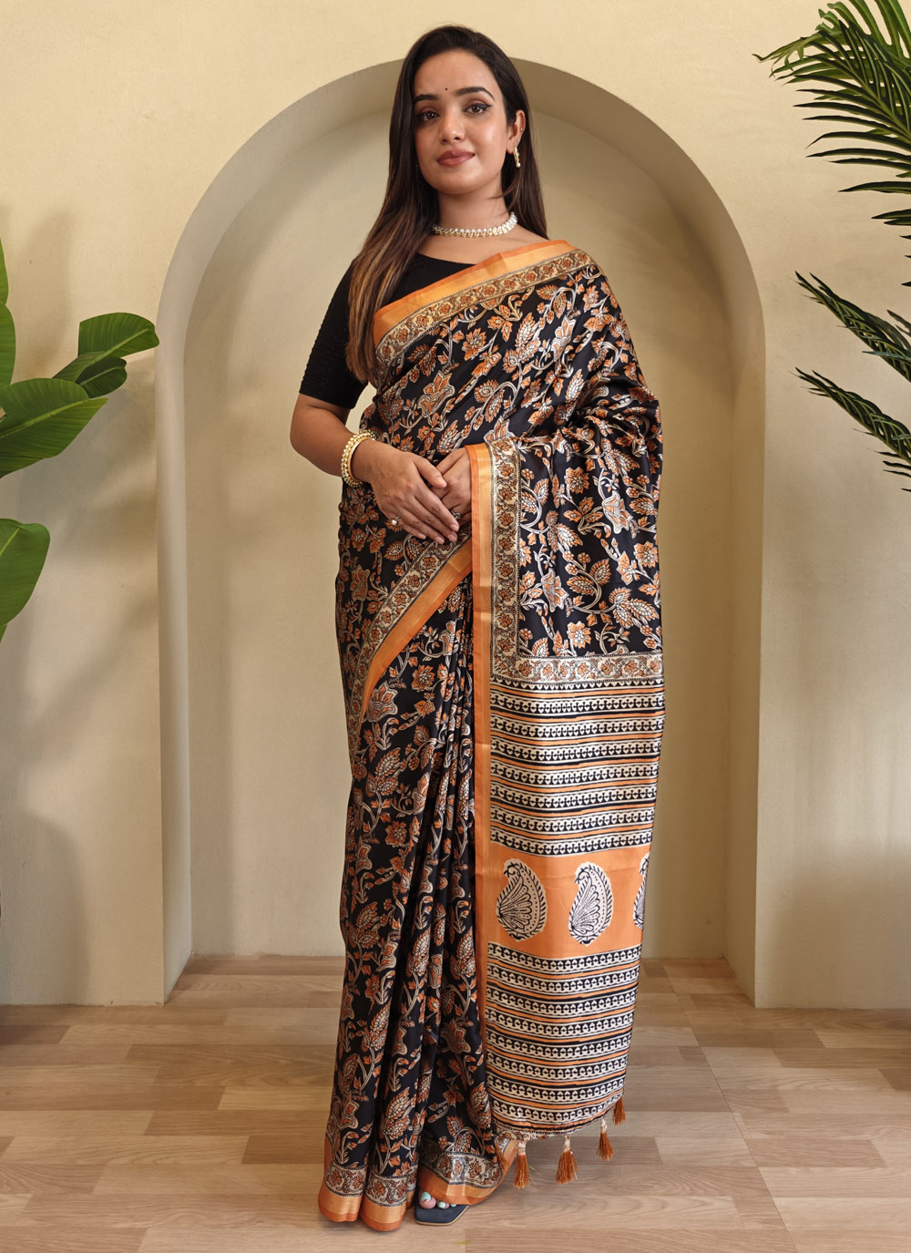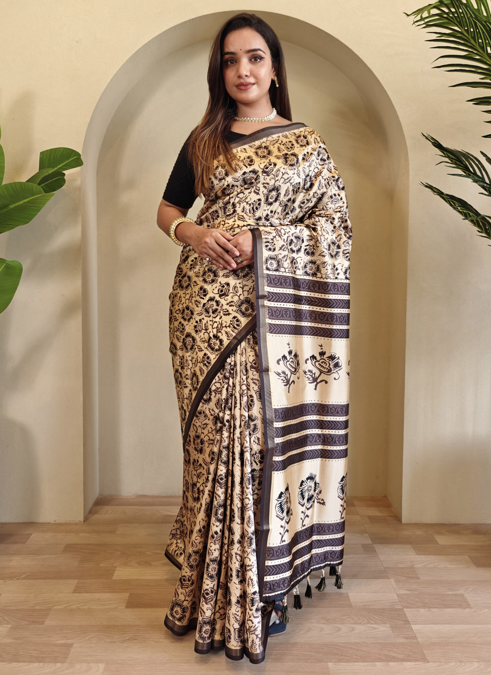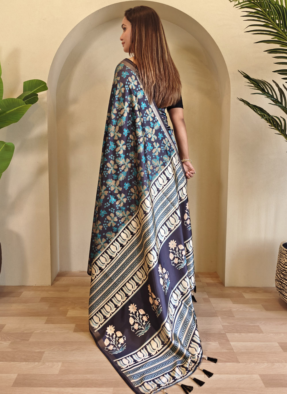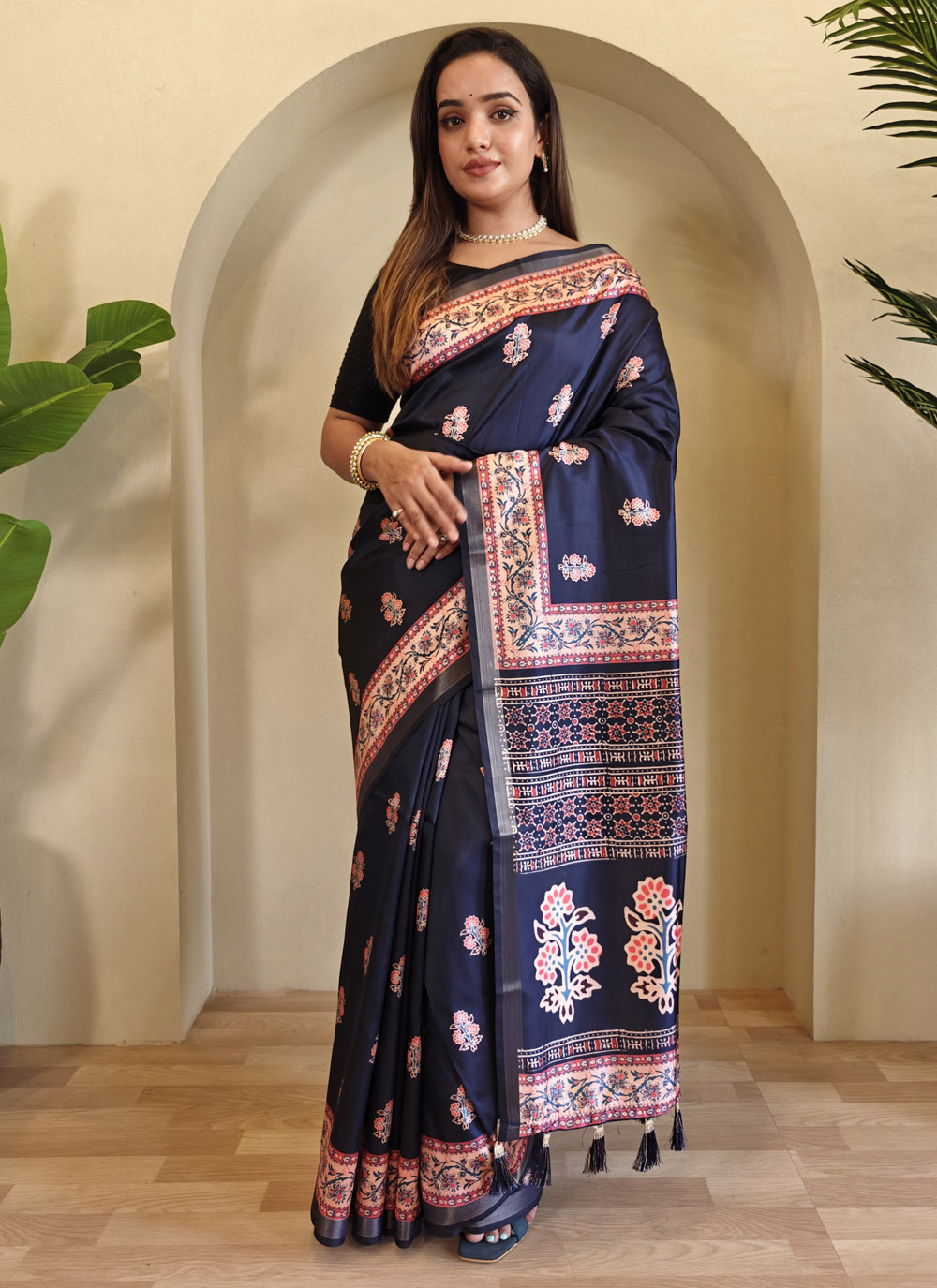 Step into everyday grace with this Navy Blue Printed Dola Viscose Saree. The breathable dola viscose fabric drapes beautifully, while the subtle prints add a refined, casual charm. perfect for office wear or gatherings. Comes with matching blouse.