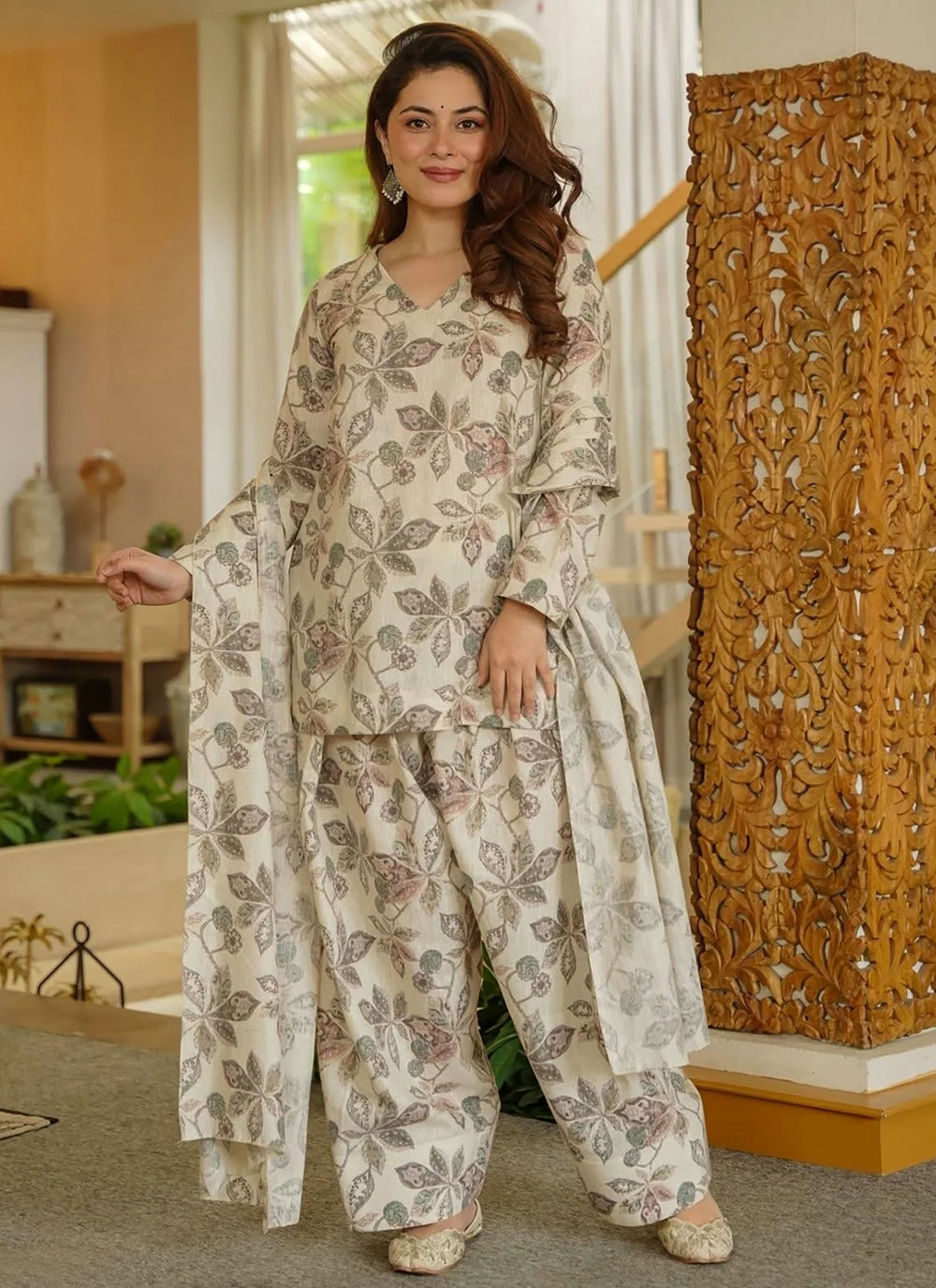 Designed to present a sophisticated yet lively appearance, this Off White Cotton Digital Printed Trendy Patiala Style Suit brings together modern digital printing with a timeless Patiala pattern. Comes with matching bottom and dupatta.
