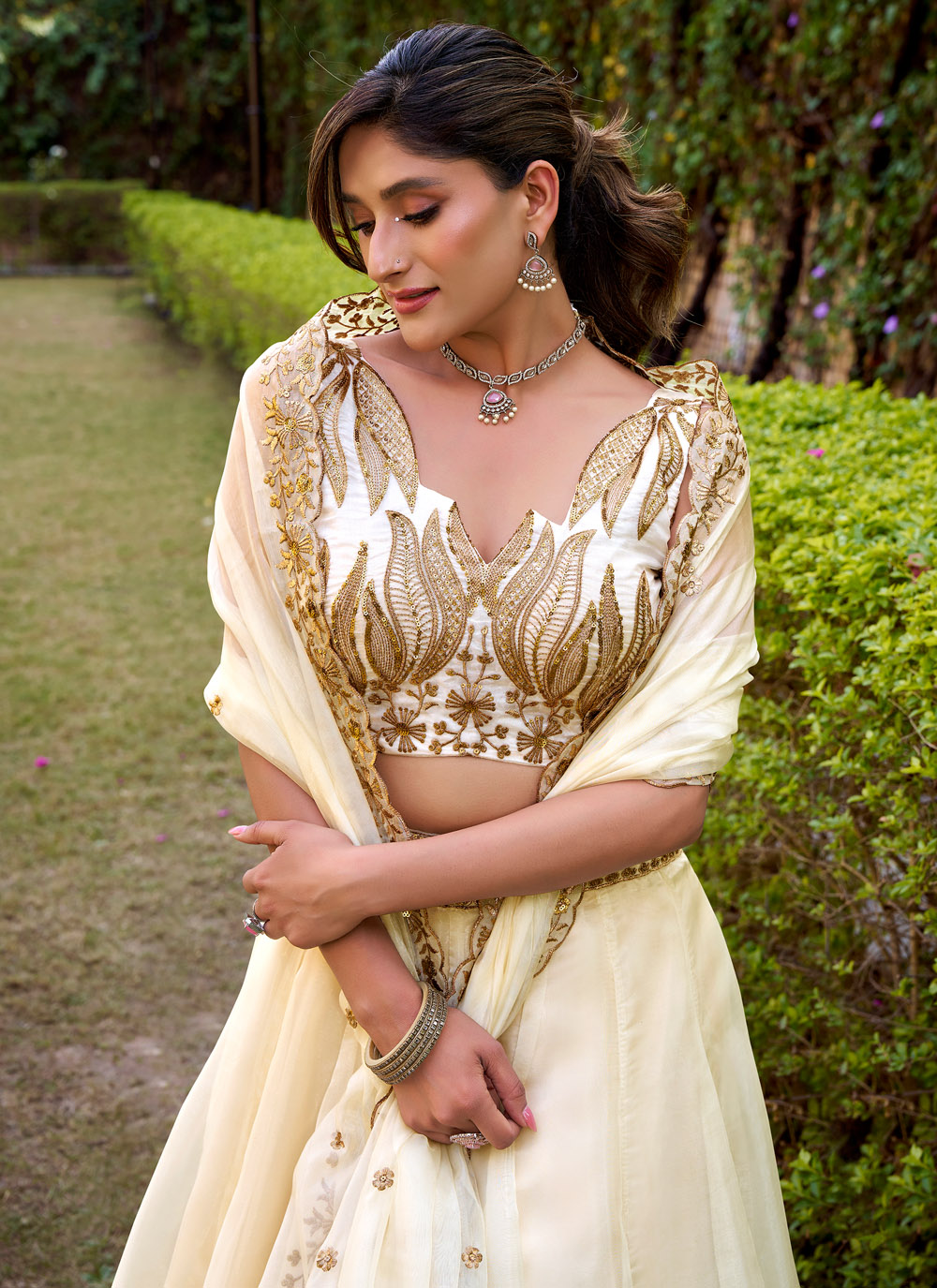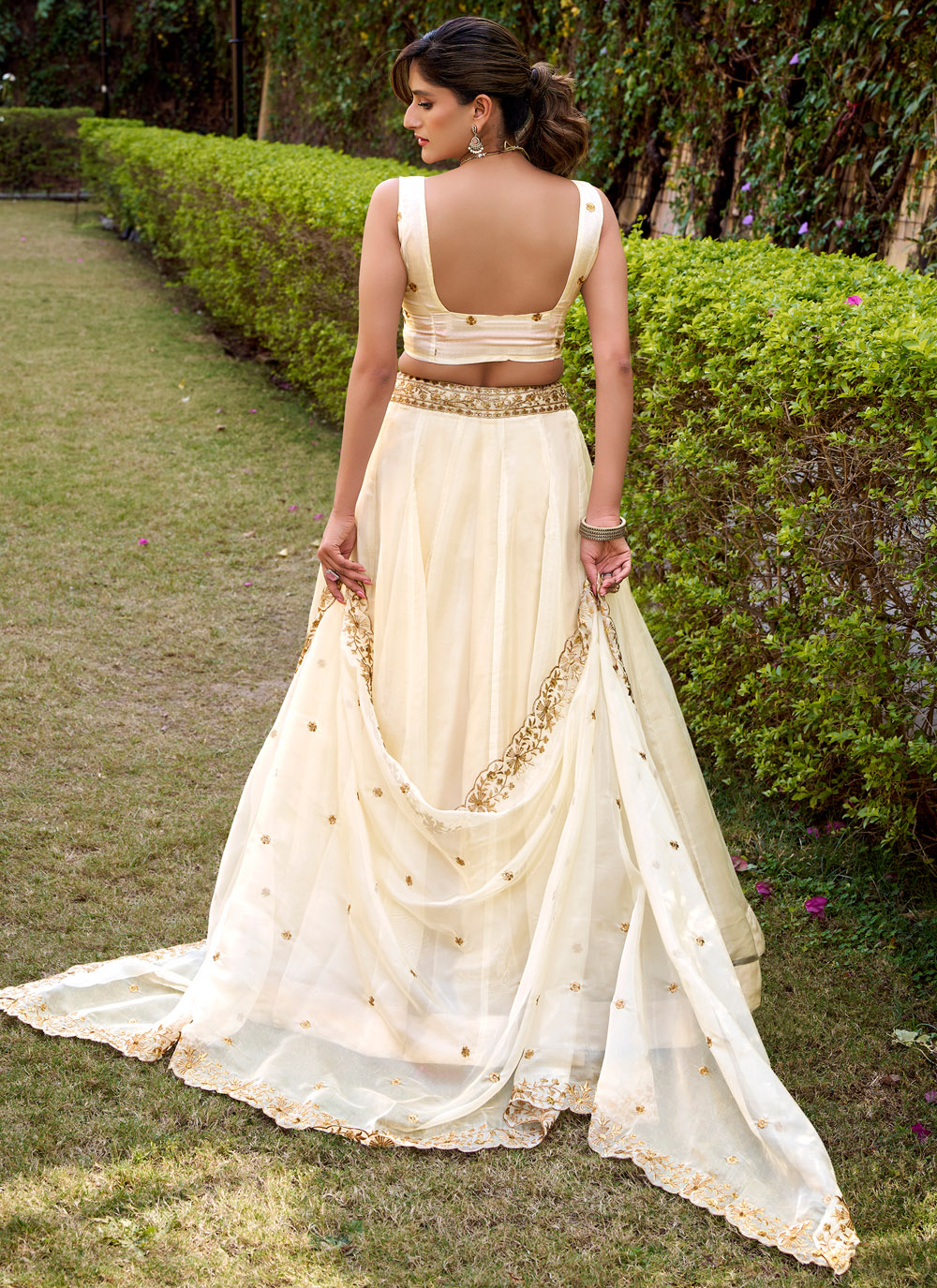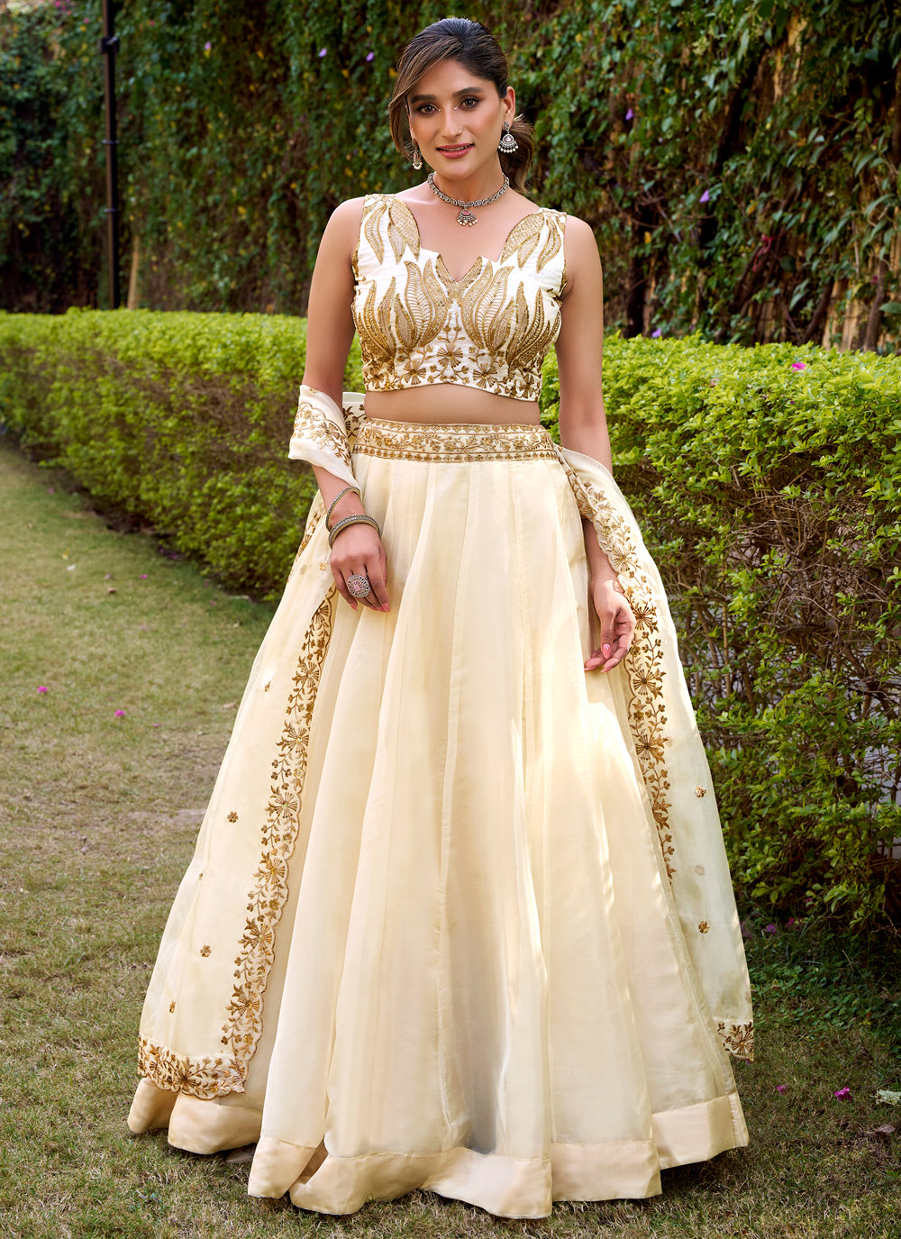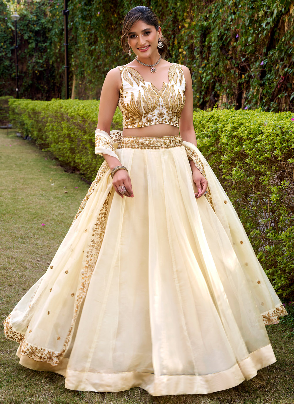 Designed on premium silk fabric, this lehenga choli features intricate embroidered patterns highlighted with shimmering sequins. Its refined detailing and smooth texture offer a perfect balance of tradition and modern fashion. Comes with matching choli and dupatta.