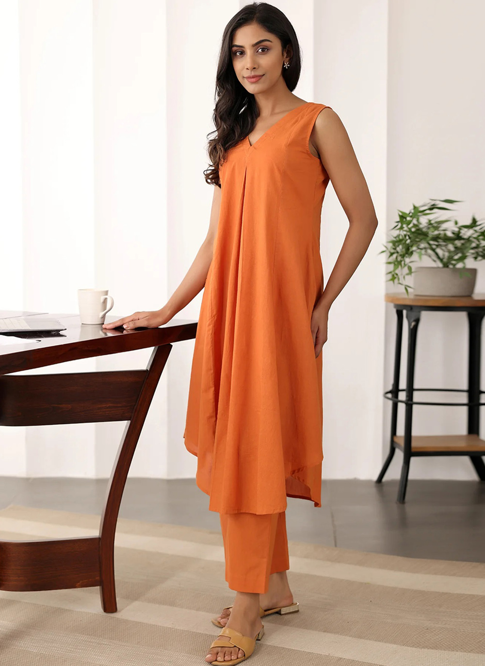 The Orange Cotton Plain Casual Wear Kurti is a perfect choice for everyday comfort and effortless style. Made from soft cotton fabric, this kurti feels light and breathable, making it ideal for daily wear. Comes with matching bottom.